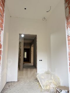 Дом построен из кирпича толщиной около 650 мм. Фундамент из блоков. Крыша мягкая кровля. Стоки и отливы установлены. Установлено 2 септика с очисткой. Имеется скважина глубиной около 100 метров. Закуплена брусчатка для устройства отмостки вокруг дома. Проложены трассы для кондиционеров. По всему дому разведена электрика. Так же закуплена большая часть светильников и элементов подсветки. Установлены подоконники из искусственного камня. По дому разведены тёплые полы с регуляторами температуры в каждой комнате. Установлены радиаторы. Камин функционирует. Котельная технически готова полностью. Дом отапливался всегда. Полы во всём доме выполнены в чистовой стяжке. Цокольный этаж оштукатурен. Первый и второй этажи готовы к чистовой отделки (к покраске или  оклейки обоями). Лестница из металлокаркаса под чистовую отделку. Закуплена напольная плитка для гаража. Куплен гипсокартон в полном необходимом объёме.