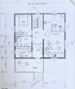 1 этаж - две холодные комнаты (можно сделать санузел и подсобное помещение), кухня 10м2 (есть небольшой погреб), столовая 10,5м2, коридор 4м2, высота потолка 2,9м., также есть гараж 15,4м2.