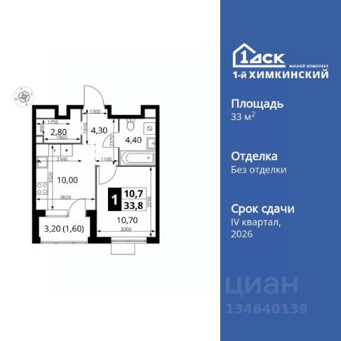 Прямая продажа от застройщика! Жилой Комплекс класса Комфорт. Продаётся 1-к квартира номер 195 общей площадью 33.3 кв.м. на 10-м этаже 10 этажного здания. Без отделки. Цена с учётом скидки. Особенности квартиры: - Линейная планировка - максимальная функциональность и удобство. - Увеличенная высота потолков - ощущение простора и легкости. - Ниша под шкаф - компактное и удобное место для вещей. - Лоджия - уютное место для отдыха и тишины. Информация о комплексе: Квартал класса комфорт плюс, где современное городское пространство граничит с удивительной природой вокруг. 1-й Химкинский расположен на территории в 102 га и органично вписан в природное окружение Химкинского леса и канала им. Москвы. В проекте предусмотрена богатая коммерческая инфраструктура с собственным торговым центром, общеобразовательные учреждения и социальные объекты. Изюминкой жилого комплекса будут спортивно-оздоровительный комплекс с термами и SPA и семейный парк развлечений. Транспортная доступность: ЖК "1-й Химкинский" дает возможность выбрать любой способ передвижения как до города, так и до самых разных объектов, которые могут представлять интерес для его жителей. Не важно, какой способ передвижения вы предпочитаете, успевать всегда и везде можно вне зависимости от выбора транспорта. - 8 мин. пешком (800 м) до остановки "Золотая Арка" -10 мин пешком (1 км) до остановки "Поворот на Ивакино" Внутренняя инфраструктура: - Безопасность: закрытые дворы без машин, безбарьерная среда и сквозные подъезды, камеры на детских площадках с возможностью трансляции на смартфоне - Идеальный отдых в кругу семьи: семейный парк развлечений на территории, торговый центр (2-х этажный) общей площадью более 8 тыс. кв. м с фудкортом - Образование: 3 детских сада и современная муниципальная школа на 2450 мест - Спортивная среда: закольцованный веломаршрут с навигацией, спортивный комплекс с термами, закрытый тренажерный зал и зоны ворк-аута - Социальные объекты: поликлиника со станцией скорой помощи, пожарное депо - Подземный паркинг и кладовые помещения на -1 этаже, станция техобслуживания и автомойка на территории