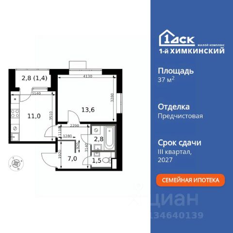 БЕЗ ПЕРВОНАЧАЛЬНОГО ВЗНОСА! Прямая продажа от застройщика! Жилой Комплекс класса Комфорт. Продаётся 1-к квартира номер 129 общей площадью 37.3 кв.м. на 11-м этаже 17 этажного здания. Предчистовая отделка. Цена с учётом скидки. Особенности квартиры: - Организуем показ в удобное для вас время! - Линейная планировка - максимальная функциональность и удобство. - Раздельный санузел - больше удобства для всех членов семьи. - Линейная кухня - функциональность и практичность в одном решении. - Ниша под шкаф - компактное и удобное место для вещей. - Лоджия - уютное место для отдыха и тишины. Квартира с предчистовой отделкой. Вам не придется заниматься черновыми и трудоёмкими работы, а чистовую отделку и дизайн - сделайте на свой вкус. Информация о комплексе: "1-й Химкинский": гармония современного города и природы на 102 га у Химкинского леса и канала им. Москвы. Развитая инфраструктура: ТЦ, школы, спорткомплекс с термами и СПА, парк развлечений. Идеальный баланс для жизни в окружении зелени и городского комфорта. Транспортная доступность: ЖК "1-й Химкинский" дает возможность выбрать любой способ передвижения как до города, так и до самых разных объектов, которые могут представлять интерес для его жителей. Не важно, какой способ передвижения вы предпочитаете, успевать всегда и везде можно вне зависимости от выбора транспорта. - 8 мин. пешком (800 м) до остановки "Золотая Арка" -10 мин пешком (1 км) до остановки "Поворот на Ивакино" Внутренняя инфраструктура: Безопасность: закрытые дворы без машин, безбарьерная среда, сквозные подъезды, камеры на детских площадках с трансляцией на смартфон. Отдых: семейный парк развлечений, двухэтажный ТЦ 8 000 м² с фудкортом. Образование: 4 детских сада, 2 муниципальные школы. Спорт: закольцованный веломаршрут, спорткомплекс с термами, тренажерный зал, воркаут зоны. Инфраструктура: поликлиника со станцией скорой помощи, пожарное депо. Паркинг: подземный паркинг, кладовые на -1 этаже, СТО и автомойка на территории. Квартира с предчистовой отделкой - ваш дизайн без черновых работ