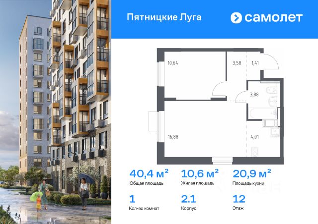 Строим кварталы для жизни с заботой о будущем. Предлагается 1-комнатная квартира комфорт-класса 40,4 кв.м в корпусе 2.1 на 12 этаже, в ЖК "Пятницкие Луга" Квартира без отделки. Доступность опции "отделка" и возможность комплектации мебелью и декором уточняйте у застройщика. Приобрести квартиру возможно по специальным акциям от застройщика, с текущими условиями акций можно ознакомиться в блоке "Акций". Цена динамическая и может отличаться, уточняйте актуальность у застройщика. Жить в проекте "Пятницкие Луга" — значит просыпаться с видом на лес или реку. До Пятницкого шоссе — 5 минут на авто, до метро "Пятницкое шоссе" — 12 минут. В 2025 году появится тоннель с выездом на Путилковское шоссе. Рядом лесопарки и усадьба. На территории комплекса появятся 4 детских сада, 2 школы и поликлиника. Во дворе — сквер, внутренний сад, плейхаб и спортхаб. Квартиры с отделкой. Доступна улучшенная отделка, мебель и декор.