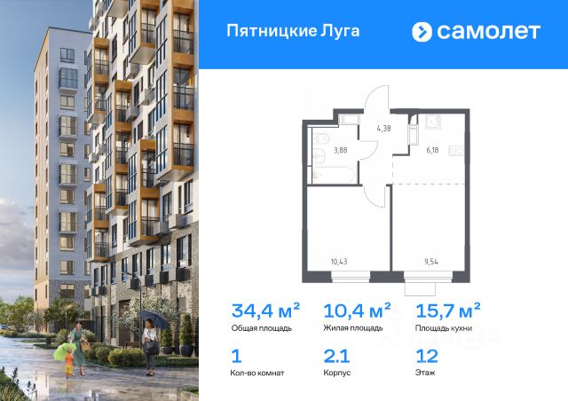Продажа 1-комнатных квартир на 12 этаже в деревне Юрлово Московской области