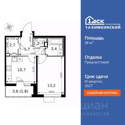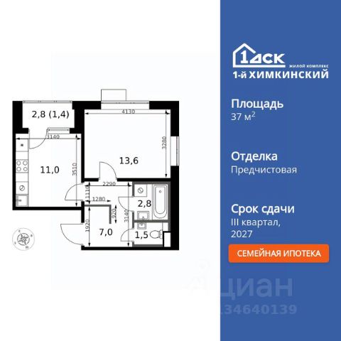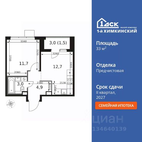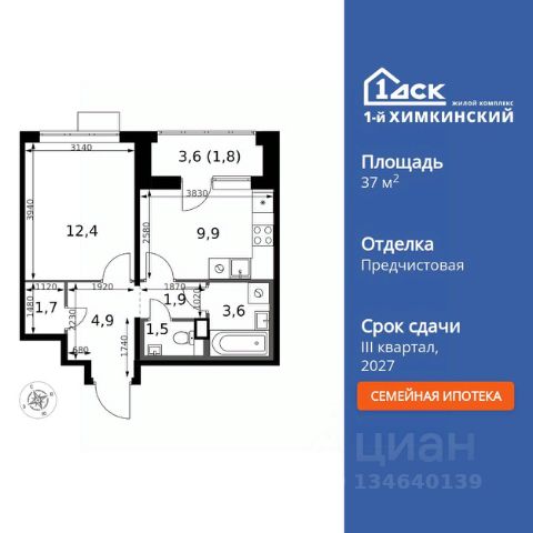 БЕЗ ПЕРВОНАЧАЛЬНОГО ВЗНОСА! Прямая продажа от застройщика! Жилой Комплекс класса Комфорт. Продаётся 1-к квартира номер 143 общей площадью 37.3 кв.м. на 12-м этаже 17 этажного здания. Отделка Whitebox. Цена с учётом скидки. Особенности квартиры: - Линейная планировка - максимальная функциональность и удобство. - Раздельный санузел - больше удобства для всех членов семьи. - Линейная кухня - функциональность и практичность в одном решении. - Ниша под шкаф - компактное и удобное место для вещей. - Лоджия - уютное место для отдыха и тишины. Квартира с предчистовой отделкой (White box). Вам не придется заниматься черновыми и трудоёмкими работы, а чистовую отделку и дизайн - сделайте на свой вкус. Информация о комплексе: Квартал класса комфорт плюс, где современное городское пространство граничит с удивительной природой вокруг. 1-й Химкинский расположен на территории в 102 га и органично вписан в природное окружение Химкинского леса и канала им. Москвы. В проекте предусмотрена богатая коммерческая инфраструктура с собственным торговым центром, общеобразовательные учреждения и социальные объекты. Изюминкой жилого комплекса будут спортивно-оздоровительный комплекс с термами и SPA и семейный парк развлечений. Транспортная доступность: ЖК "1-й Химкинский" дает возможность выбрать любой способ передвижения как до города, так и до самых разных объектов, которые могут представлять интерес для его жителей. Не важно, какой способ передвижения вы предпочитаете, успевать всегда и везде можно вне зависимости от выбора транспорта. - 8 мин. пешком (800 м) до остановки "Золотая Арка" -10 мин пешком (1 км) до остановки "Поворот на Ивакино" Внутренняя инфраструктура: - Безопасность: закрытые дворы без машин, безбарьерная среда и сквозные подъезды, камеры на детских площадках с возможностью трансляции на смартфоне - Идеальный отдых в кругу семьи: семейный парк развлечений на территории, торговый центр (2-х этажный) общей площадью более 8 тыс. кв. м с фудкортом - Образование: 3 детских сада и современная муниципальная школа на 2450 мест - Спортивная среда: закольцованный веломаршрут с навигацией, спортивный комплекс с термами, закрытый тренажерный зал и зоны ворк-аута - Социальные объекты: поликлиника со станцией скорой помощи, пожарное депо - Подземный паркинг и кладовые помещения на -1 этаже, станция техобслуживания и автомойка на территории
