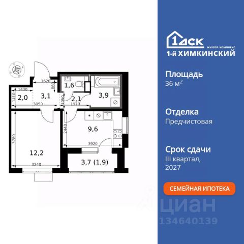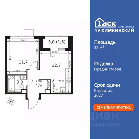 БЕЗ ПЕРВОНАЧАЛЬНОГО ВЗНОСА! ТОЛЬКО 4 ДНЯ ДО 10.02 • Дополнительная скидка 10% • Ставка 10% по стандартной ипотеке для всех без наценок • Ставка 3,5% по семейной ипотеке Успейте купить выгодно! Прямая продажа от застройщика! Жилой Комплекс класса Комфорт. Продаётся 1-к квартира номер 556 общей площадью 38.7 кв.м. на 12-м этаже 13 этажного здания. Отделка Whitebox. Цена с учётом скидки. Особенности квартиры: - Линейная планировка - максимальная функциональность и удобство. - Раздельный санузел - больше удобства для всех членов семьи. - Гардеробная - удобство для хранения и организации вещей. - Лоджия - уютное место для отдыха и тишины. Квартира с предчистовой отделкой (White box). Вам не придется заниматься черновыми и трудоёмкими работы, а чистовую отделку и дизайн - сделайте на свой вкус. Информация о комплексе: Квартал класса комфорт плюс, где современное городское пространство граничит с удивительной природой вокруг. 1-й Химкинский расположен на территории в 102 га и органично вписан в природное окружение Химкинского леса и канала им. Москвы. В проекте предусмотрена богатая коммерческая инфраструктура с собственным торговым центром, общеобразовательные учреждения и социальные объекты. Изюминкой жилого комплекса будут спортивно-оздоровительный комплекс с термами и SPA и семейный парк развлечений. Транспортная доступность: ЖК "1-й Химкинский" дает возможность выбрать любой способ передвижения как до города, так и до самых разных объектов, которые могут представлять интерес для его жителей. Не важно, какой способ передвижения вы предпочитаете, успевать всегда и везде можно вне зависимости от выбора транспорта. - 8 мин. пешком (800 м) до остановки "Золотая Арка" -10 мин пешком (1 км) до остановки "Поворот на Ивакино" Внутренняя инфраструктура: - Безопасность: закрытые дворы без машин, безбарьерная среда и сквозные подъезды, камеры на детских площадках с возможностью трансляции на смартфоне - Идеальный отдых в кругу семьи: семейный парк развлечений на территории, торговый центр (2-х этажный) общей площадью более 8 тыс. кв. м с фудкортом - Образование: 3 детских сада и современная муниципальная школа на 2450 мест - Спортивная среда: закольцованный веломаршрут с навигацией, спортивный комплекс с термами, закрытый тренажерный зал и зоны ворк-аута - Социальные объекты: поликлиника со станцией скорой помощи, пожарное депо - Подземный паркинг и кладовые помещения на -1 этаже, станция техобслуживания и автомойка на территории