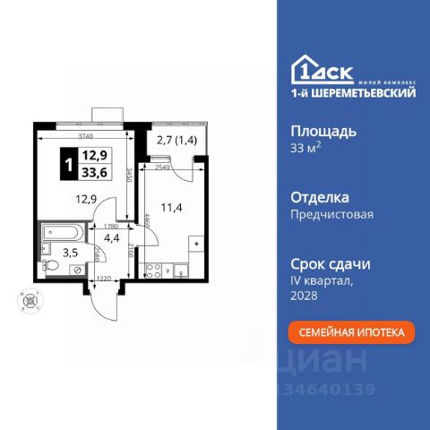 ДОПОЛНИТЕЛЬНАЯ СКИДКА ДО 10% В ОФИСЕ ПРОДАЖ! Прямая продажа от застройщика! Жилой Комплекс класса Комфорт Плюс. Продаётся 1-к квартира номер 301 общей площадью 33.6 кв.м. на 15-м этаже 16 этажного здания. Отделка Whitebox. Цена с учётом скидки. Особенности квартиры: - Просторная спальня, в которой можно разместить большую кровать. - Линейная планировка - максимальная функциональность и удобство. - Увеличенная ширина окна/окон - больше света и визуального простора. - Можно оборудовать рабочее место - комфорт для работы и учёбы. - Лоджия - уютное место для отдыха и тишины. Квартира с предчистовой отделкой (White box). Вам не придется заниматься черновыми и трудоёмкими работы, а чистовую отделку и дизайн - сделайте на свой вкус. Информация о комплексе: ЖК 1-й Шереметьевский расположен в самом центре Подрезково, от него всего 6 минут пешком до одноименной станции ж/д и планируемой к открытию МЦД-3. В комплексе яркие и уютные, лобби, большая колясочная, лапомойка. Благодаря гостевому санузлу на 1 этаже прогулки станут по-настоящему долгими. Два лифта пассажирский и грузовой.Во всех корпусах 1-го Шереметьевского там устроены кладовые, а в корпусах 3-5 есть подземный паркинг. В ЖК 1-й Шереметьевский разнообразие площадей и планировок. Большие кухни-гостиные: в них два окна или больше. Во всех квартирах площадью от 40 кв.м. и выше спроектировано 2 санузла. Большие остекленные лоджии с отделкой. Система Умная квартира, реализованная в 1-м Шереметьевском. В каждой квартире установлены датчики протечек и запорные вентили с электроприводом, которые самостоятельно перекрывают воду в случае аварии. Мобильное приложение управляет группами электропотребителей: даже если вы забыли утюг включенным, можно обесточить его дистанционно. Транспортная доступность: - Общественный транспорт: До ближайших станций метро Планерной и Войковской около 40-50 минут на автобусе. 6 минут до ЖД станции Подрезково (МЦД-3) - Личный автотранспорт: Удобный выезд на Ленинградское шоссе позволяет быстро добираться до МКАДа и в центр Москвы, до платной трассы М11 и в аэропорт Шереметьево. 3 минуты до Ленинградского ш. 10 минут до платной трассы М11 15 минут до МКАД 20 минут до ст. м Войковская 25 минут до ст. м Планерная Внутренняя инфраструктура: 1-й Шереметьевский не только сокращает время, которое вы будете проводить в дороге. Но и предпринимает многое, чтобы вы меньше ездили и чаще ходили. На первых этажах корпусов разместятся фрешмаркеты и пункты выдачи маркетплейсов, салоны красоты и химчистки, кофейни и пекарни всё, что необходимо изо дня в день, но не заслуживает отдельной поездки на машине или такси. В квартале будут построены собственные школа и детский сад. Школа рассчитана на 1100 учеников. В ней будут 25-метровый бассейн и просторный атриум, медиатека. Детский сад рассчитана на 400 малышей. Здесь стильный дизайн и комфортные группы, большой физкультурный зал и просторный зал для занятия музыкой. Дворы без маш
