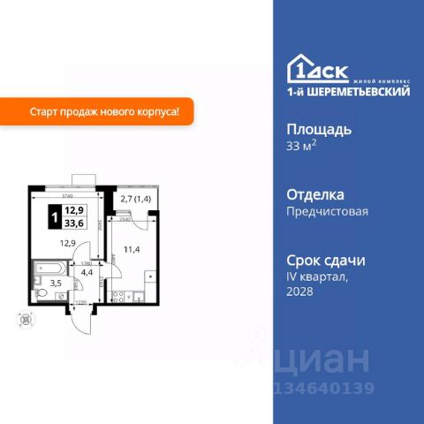 Прямая продажа от застройщика! Жилой Комплекс класса Комфорт Плюс. Продаётся 1-к квартира номер 944 общей площадью 35.1 кв.м. на 15-м этаже 16 этажного здания. Предчистовая отделка. Цена с учётом скидки. Особенности квартиры: - Просторная спальня, в которой можно разместить большую кровать. - Линейная планировка - максимальная функциональность и удобство. - Увеличенная ширина окна/окон - больше света и визуального простора. - Можно оборудовать 2 или более рабочих места - пространство для нескольких человек. - Можно оборудовать рабочее место - комфорт для работы и учёбы. - Линейная кухня - функциональность и практичность в одном решении. - Ниша под шкаф - компактное и удобное место для вещей. - Лоджия - уютное место для отдыха и тишины. Квартира с предчистовой отделкой (White box). Вам не придется заниматься черновыми и трудоёмкими работы, а чистовую отделку и дизайн - сделайте на свой вкус. Информация о комплексе: ЖК 1-й Шереметьевский расположен в самом центре Подрезково, от него всего 6 минут пешком до одноименной станции ж/д и планируемой к открытию МЦД-3. В комплексе яркие и уютные, лобби, большая колясочная, лапомойка. Благодаря гостевому санузлу на 1 этаже прогулки станут по-настоящему долгими. Два лифта пассажирский и грузовой.Во всех корпусах 1-го Шереметьевского там устроены кладовые, а в корпусах 3-5 есть подземный паркинг. В ЖК 1-й Шереметьевский разнообразие площадей и планировок. Большие кухни-гостиные: в них два окна или больше. Во всех квартирах площадью от 40 кв.м. и выше спроектировано 2 санузла. Большие остекленные лоджии с отделкой. Система Умная квартира, реализованная в 1-м Шереметьевском. В каждой квартире установлены датчики протечек и запорные вентили с электроприводом, которые самостоятельно перекрывают воду в случае аварии. Мобильное приложение управляет группами электропотребителей: даже если вы забыли утюг включенным, можно обесточить его дистанционно. Транспортная доступность: - Общественный транспорт: До ближайших станций метро Планерной и Войковской около 40-50 минут на автобусе. 6 минут до ЖД станции Подрезково (МЦД-3) - Личный автотранспорт: Удобный выезд на Ленинградское шоссе позволяет быстро добираться до МКАДа и в центр Москвы, до платной трассы М11 и в аэропорт Шереметьево. 3 минуты до Ленинградского ш. 10 минут до платной трассы М11 15 минут до МКАД 20 минут до ст. м Войковская 25 минут до ст. м Планерная Внутренняя инфраструктура: 1-й Шереметьевский не только сокращает время, которое вы будете проводить в дороге. Но и предпринимает многое, чтобы вы меньше ездили и чаще ходили. На первых этажах корпусов разместятся фрешмаркеты и пункты выдачи маркетплейсов, салоны красоты и химчистки, кофейни и пекарни всё, что необходимо изо дня в день, но не заслуживает отдельной поездки на машине или такси. В квартале будут построены собственные школа и детский сад. Школа рассчитана на 1100 учеников. В ней будут 25-метровый бассейн и просторный атриум, м