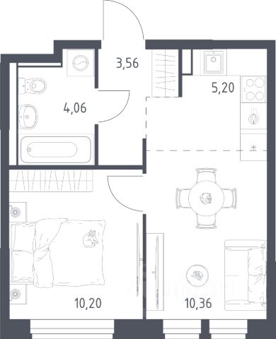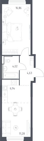 Планировка евро. Кухня-гостиная, совмещённый санузел, широкая прихожая - эргономично, современно!