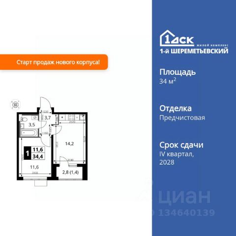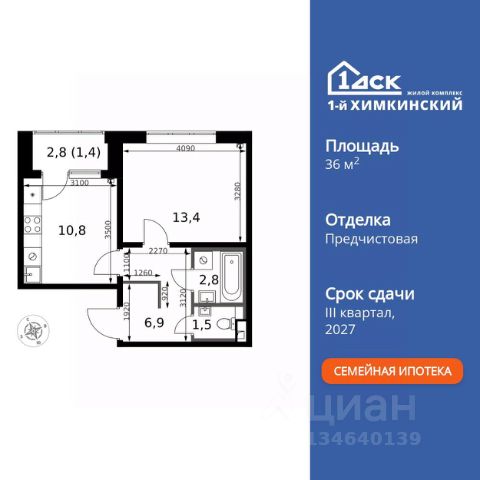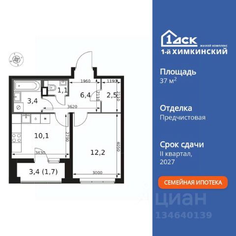 БЕЗ ПЕРВОНАЧАЛЬНОГО ВЗНОСА! ТОЛЬКО 4 ДНЯ ДО 10.02 • Дополнительная скидка 10% • Ставка 10% по стандартной ипотеке для всех без наценок • Ставка 3,5% по семейной ипотеке Успейте купить выгодно! Прямая продажа от застройщика! Жилой Комплекс класса Комфорт. Продаётся 1-к квартира номер 4 общей площадью 36.1 кв.м. на 2-м этаже 17 этажного здания. Отделка Whitebox. Цена с учётом скидки. Особенности квартиры: - Линейная планировка - максимальная функциональность и удобство. - Раздельный санузел - больше удобства для всех членов семьи. - Гардеробная - удобство для хранения и организации вещей. - Лоджия - уютное место для отдыха и тишины. Квартира с предчистовой отделкой (White box). Вам не придется заниматься черновыми и трудоёмкими работы, а чистовую отделку и дизайн - сделайте на свой вкус. Информация о комплексе: Квартал класса комфорт плюс, где современное городское пространство граничит с удивительной природой вокруг. 1-й Химкинский расположен на территории в 102 га и органично вписан в природное окружение Химкинского леса и канала им. Москвы. В проекте предусмотрена богатая коммерческая инфраструктура с собственным торговым центром, общеобразовательные учреждения и социальные объекты. Изюминкой жилого комплекса будут спортивно-оздоровительный комплекс с термами и SPA и семейный парк развлечений. Транспортная доступность: ЖК "1-й Химкинский" дает возможность выбрать любой способ передвижения как до города, так и до самых разных объектов, которые могут представлять интерес для его жителей. Не важно, какой способ передвижения вы предпочитаете, успевать всегда и везде можно вне зависимости от выбора транспорта. - 8 мин. пешком (800 м) до остановки "Золотая Арка" -10 мин пешком (1 км) до остановки "Поворот на Ивакино" Внутренняя инфраструктура: - Безопасность: закрытые дворы без машин, безбарьерная среда и сквозные подъезды, камеры на детских площадках с возможностью трансляции на смартфоне - Идеальный отдых в кругу семьи: семейный парк развлечений на территории, торговый центр (2-х этажный) общей площадью более 8 тыс. кв. м с фудкортом - Образование: 3 детских сада и современная муниципальная школа на 2450 мест - Спортивная среда: закольцованный веломаршрут с навигацией, спортивный комплекс с термами, закрытый тренажерный зал и зоны ворк-аута - Социальные объекты: поликлиника со станцией скорой помощи, пожарное депо - Подземный паркинг и кладовые помещения на -1 этаже, станция техобслуживания и автомойка на территории