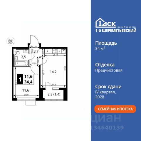 БЕЗ ПЕРВОНАЧАЛЬНОГО ВЗНОСА! • ИПОТЕКА 10% ДЛЯ ВСЕХ БЕЗ НАЦЕНОК • ДОСТУПНО ПО СЕМЕЙНОЙ ИПОТЕКЕ Прямая продажа от застройщика! Жилой Комплекс класса Комфорт. Продаётся 1-к квартира номер 4 общей площадью 36.1 кв.м. на 2-м этаже 17 этажного здания. Отделка Whitebox. Цена с учётом скидки. Особенности квартиры: - Линейная планировка - максимальная функциональность и удобство. - Раздельный санузел - больше удобства для всех членов семьи. - Гардеробная - удобство для хранения и организации вещей. - Лоджия - уютное место для отдыха и тишины. Квартира с предчистовой отделкой (White box). Вам не придется заниматься черновыми и трудоёмкими работы, а чистовую отделку и дизайн - сделайте на свой вкус. Информация о комплексе: Квартал класса комфорт плюс, где современное городское пространство граничит с удивительной природой вокруг. 1-й Химкинский расположен на территории в 102 га и органично вписан в природное окружение Химкинского леса и канала им. Москвы. В проекте предусмотрена богатая коммерческая инфраструктура с собственным торговым центром, общеобразовательные учреждения и социальные объекты. Изюминкой жилого комплекса будут спортивно-оздоровительный комплекс с термами и SPA и семейный парк развлечений. Транспортная доступность: ЖК "1-й Химкинский" дает возможность выбрать любой способ передвижения как до города, так и до самых разных объектов, которые могут представлять интерес для его жителей. Не важно, какой способ передвижения вы предпочитаете, успевать всегда и везде можно вне зависимости от выбора транспорта. - 8 мин. пешком (800 м) до остановки "Золотая Арка" -10 мин пешком (1 км) до остановки "Поворот на Ивакино" Внутренняя инфраструктура: - Безопасность: закрытые дворы без машин, безбарьерная среда и сквозные подъезды, камеры на детских площадках с возможностью трансляции на смартфоне - Идеальный отдых в кругу семьи: семейный парк развлечений на территории, торговый центр (2-х этажный) общей площадью более 8 тыс. кв. м с фудкортом - Образование: 3 детских сада и современная муниципальная школа на 2450 мест - Спортивная среда: закольцованный веломаршрут с навигацией, спортивный комплекс с термами, закрытый тренажерный зал и зоны ворк-аута - Социальные объекты: поликлиника со станцией скорой помощи, пожарное депо - Подземный паркинг и кладовые помещения на -1 этаже, станция техобслуживания и автомойка на территории