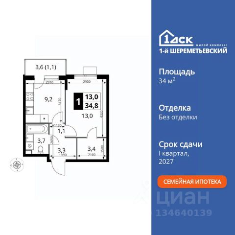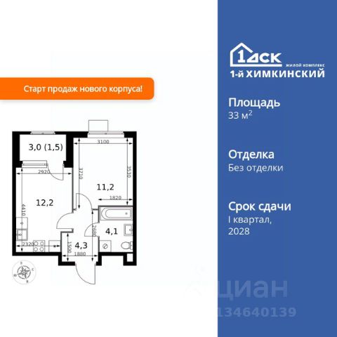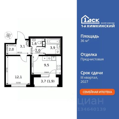 БЕЗ ПЕРВОНАЧАЛЬНОГО ВЗНОСА! • ИПОТЕКА 10% ДЛЯ ВСЕХ БЕЗ НАЦЕНОК • ДОСТУПНО ПО СЕМЕЙНОЙ ИПОТЕКЕ Прямая продажа от застройщика! Жилой Комплекс класса Комфорт. Продаётся 1-к квартира номер 517 общей площадью 38.3 кв.м. на 2-м этаже 13 этажного здания. Отделка Whitebox. Цена с учётом скидки. Особенности квартиры: - Линейная планировка - максимальная функциональность и удобство. - Раздельный санузел - больше удобства для всех членов семьи. - Гардеробная - удобство для хранения и организации вещей. - Лоджия - уютное место для отдыха и тишины. Квартира с предчистовой отделкой (White box). Вам не придется заниматься черновыми и трудоёмкими работы, а чистовую отделку и дизайн - сделайте на свой вкус. Информация о комплексе: Квартал класса комфорт плюс, где современное городское пространство граничит с удивительной природой вокруг. 1-й Химкинский расположен на территории в 102 га и органично вписан в природное окружение Химкинского леса и канала им. Москвы. В проекте предусмотрена богатая коммерческая инфраструктура с собственным торговым центром, общеобразовательные учреждения и социальные объекты. Изюминкой жилого комплекса будут спортивно-оздоровительный комплекс с термами и SPA и семейный парк развлечений. Транспортная доступность: ЖК "1-й Химкинский" дает возможность выбрать любой способ передвижения как до города, так и до самых разных объектов, которые могут представлять интерес для его жителей. Не важно, какой способ передвижения вы предпочитаете, успевать всегда и везде можно вне зависимости от выбора транспорта. - 8 мин. пешком (800 м) до остановки "Золотая Арка" -10 мин пешком (1 км) до остановки "Поворот на Ивакино" Внутренняя инфраструктура: - Безопасность: закрытые дворы без машин, безбарьерная среда и сквозные подъезды, камеры на детских площадках с возможностью трансляции на смартфоне - Идеальный отдых в кругу семьи: семейный парк развлечений на территории, торговый центр (2-х этажный) общей площадью более 8 тыс. кв. м с фудкортом - Образование: 3 детских сада и современная муниципальная школа на 2450 мест - Спортивная среда: закольцованный веломаршрут с навигацией, спортивный комплекс с термами, закрытый тренажерный зал и зоны ворк-аута - Социальные объекты: поликлиника со станцией скорой помощи, пожарное депо - Подземный паркинг и кладовые помещения на -1 этаже, станция техобслуживания и автомойка на территории