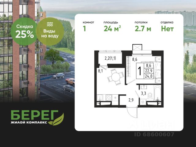 БЕЗ ПЕРВОНАЧАЛЬНОГО ВЗНОСА! Прямая продажа от застройщика! Жилой Комплекс класса Комфорт. Продаётся 1-к квартира номер 155 общей площадью 33.3 кв.м. на 6-м этаже 10 этажного здания. Без отделки. Цена с учётом скидки. Особенности квартиры: - Организуем показ в удобное для вас время! - Линейная планировка - максимальная функциональность и удобство. - Ниша под шкаф - компактное и удобное место для вещей. - Лоджия - уютное место для отдыха и тишины. Квартира без отделки. Чистый холст для воплощения интерьера вашей мечты. Информация о комплексе: "1-й Химкинский": гармония современного города и природы на 102 га у Химкинского леса и канала им. Москвы. Развитая инфраструктура: ТЦ, школы, спорткомплекс с термами и СПА, парк развлечений. Идеальный баланс для жизни в окружении зелени и городского комфорта. Транспортная доступность: ЖК "1-й Химкинский" дает возможность выбрать любой способ передвижения как до города, так и до самых разных объектов, которые могут представлять интерес для его жителей. Не важно, какой способ передвижения вы предпочитаете, успевать всегда и везде можно вне зависимости от выбора транспорта. - 8 мин. пешком (800 м) до остановки "Золотая Арка" -10 мин пешком (1 км) до остановки "Поворот на Ивакино" Внутренняя инфраструктура: Безопасность: закрытые дворы без машин, безбарьерная среда, сквозные подъезды, камеры на детских площадках с трансляцией на смартфон. Отдых: семейный парк развлечений, двухэтажный ТЦ 8 000 м² с фудкортом. Образование: 4 детских сада, 2 муниципальные школы. Спорт: закольцованный веломаршрут, спорткомплекс с термами, тренажерный зал, воркаут зоны. Инфраструктура: поликлиника со станцией скорой помощи, пожарное депо. Паркинг: подземный паркинг, кладовые на -1 этаже, СТО и автомойка на территории. Квартира без отделки - чистый холст для вашего интерьера.