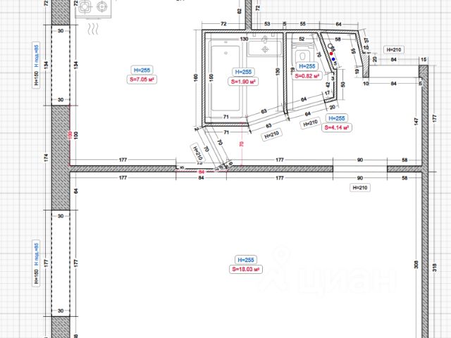Квартира без ремонта, в бетоне, как была от застройщика. Водопровод и канализация - только стояки, электричество - только ввод в квартиру. Перегородки и сантехкабина стоят. Если Вы не занимаетесь кулинарией 24/7, возможно сделать из большой комнаты кухню-гостиную, а из кухни спальню (евродвушку).