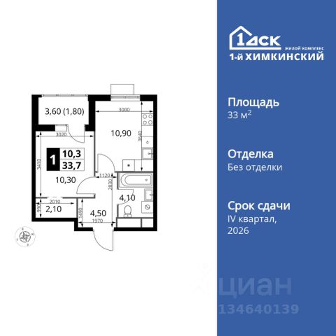 Прямая продажа от застройщика! Жилой Комплекс класса Комфорт. Продаётся 1-к квартира номер 243 общей площадью 33.7 кв.м. на 9-м этаже 16 этажного здания. Без отделки. Особенности квартиры: - Мастер-зона с гардеробной. Просторное место для отдыха и удобного хранения вещей. - Линейная планировка - максимальная функциональность и удобство. - Гардеробная - удобство для хранения и организации вещей. - Ниша под шкаф - компактное и удобное место для вещей. - Лоджия - уютное место для отдыха и тишины. Информация о комплексе: Квартал класса комфорт плюс, где современное городское пространство граничит с удивительной природой вокруг. 1-й Химкинский расположен на территории в 102 га и органично вписан в природное окружение Химкинского леса и канала им. Москвы. В проекте предусмотрена богатая коммерческая инфраструктура с собственным торговым центром, общеобразовательные учреждения и социальные объекты. Изюминкой жилого комплекса будут спортивно-оздоровительный комплекс с термами и SPA и семейный парк развлечений. Транспортная доступность: ЖК "1-й Химкинский" дает возможность выбрать любой способ передвижения как до города, так и до самых разных объектов, которые могут представлять интерес для его жителей. Не важно, какой способ передвижения вы предпочитаете, успевать всегда и везде можно вне зависимости от выбора транспорта. - 8 мин. пешком (800 м) до остановки "Золотая Арка" -10 мин пешком (1 км) до остановки "Поворот на Ивакино" Внутренняя инфраструктура: - Безопасность: закрытые дворы без машин, безбарьерная среда и сквозные подъезды, камеры на детских площадках с возможностью трансляции на смартфоне - Идеальный отдых в кругу семьи: семейный парк развлечений на территории, торговый центр (2-х этажный) общей площадью более 8 тыс. кв. м с фудкортом - Образование: 3 детских сада и современная муниципальная школа на 2450 мест - Спортивная среда: закольцованный веломаршрут с навигацией, спортивный комплекс с термами, закрытый тренажерный зал и зоны ворк-аута - Социальные объекты: поликлиника со станцией скорой помощи, пожарное депо - Подземный паркинг и кладовые помещения на -1 этаже, станция техобслуживания и автомойка на территории
