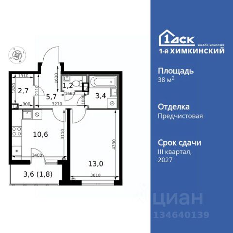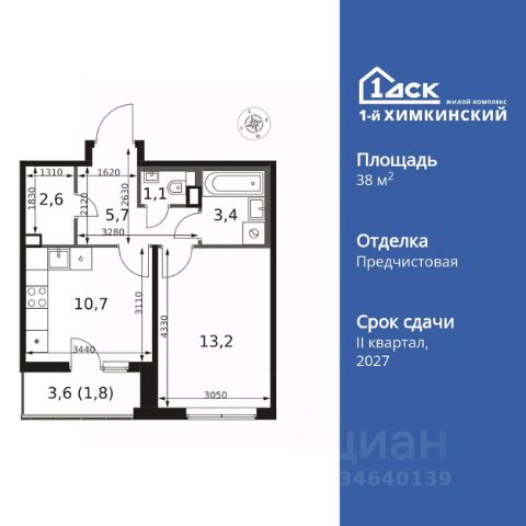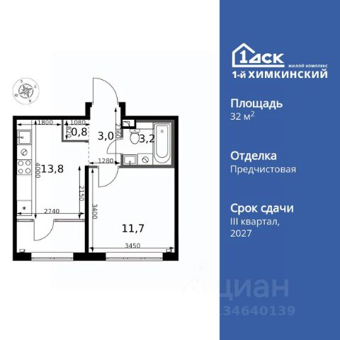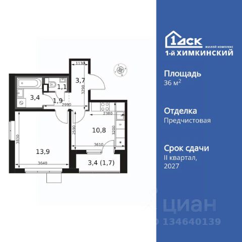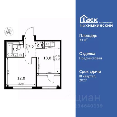 УСПЕЙ ПО СЕМЕЙНОЙ ИПОТЕКЕ БЕЗ НАЦЕНКИ! От 25 000 рублей в месяц! Прямая продажа от застройщика! Жилой Комплекс класса Комфорт. Продаётся 1-к квартира номер 205 общей площадью 33.8 кв.м. на 16-м этаже 17 этажного здания. Отделка Whitebox. Особенности квартиры: - Линейная планировка - максимальная функциональность и удобство. - Ниша под шкаф - компактное и удобное место для вещей. - Лоджия - уютное место для отдыха и тишины. Квартира с предчистовой отделкой (White box). Вам не придется заниматься черновыми и трудоёмкими работы, а чистовую отделку и дизайн - сделайте на свой вкус. Информация о комплексе: Квартал класса комфорт плюс, где современное городское пространство граничит с удивительной природой вокруг. 1-й Химкинский расположен на территории в 102 га и органично вписан в природное окружение Химкинского леса и канала им. Москвы. В проекте предусмотрена богатая коммерческая инфраструктура с собственным торговым центром, общеобразовательные учреждения и социальные объекты. Изюминкой жилого комплекса будут спортивно-оздоровительный комплекс с термами и SPA и семейный парк развлечений. Транспортная доступность: ЖК "1-й Химкинский" дает возможность выбрать любой способ передвижения как до города, так и до самых разных объектов, которые могут представлять интерес для его жителей. Не важно, какой способ передвижения вы предпочитаете, успевать всегда и везде можно вне зависимости от выбора транспорта. - 8 мин. пешком (800 м) до остановки "Золотая Арка" -10 мин пешком (1 км) до остановки "Поворот на Ивакино" Внутренняя инфраструктура: - Безопасность: закрытые дворы без машин, безбарьерная среда и сквозные подъезды, камеры на детских площадках с возможностью трансляции на смартфоне - Идеальный отдых в кругу семьи: семейный парк развлечений на территории, торговый центр (2-х этажный) общей площадью более 8 тыс. кв. м с фудкортом - Образование: 3 детских сада и современная муниципальная школа на 2450 мест - Спортивная среда: закольцованный веломаршрут с навигацией, спортивный комплекс с термами, закрытый тренажерный зал и зоны ворк-аута - Социальные объекты: поликлиника со станцией скорой помощи, пожарное депо - Подземный паркинг и кладовые помещения на -1 этаже, станция техобслуживания и автомойка на территории 1-комнатная квартира в ипотеку в квартале Международный в микрорайоне Клязьма-Старбеево.