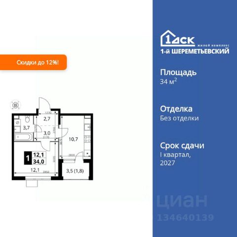 Прямая продажа от застройщика! Жилой Комплекс класса Комфорт Плюс. Продаётся 1-к квартира номер 849 общей площадью 35.9 кв.м. на 6-м этаже 17 этажного здания. Без отделки. Особенности квартиры: - Просторная спальня, в которой можно разместить большую кровать. - Линейная планировка - максимальная функциональность и удобство. - Можно оборудовать рабочее место - комфорт для работы и учёбы. - Гардеробная - удобство для хранения и организации вещей. - Ниша под шкаф - компактное и удобное место для вещей. - Балкон - открытое пространство для отдыха. Информация о комплексе: ЖК 1-й Шереметьевский расположен в самом центре Подрезково, от него всего 6 минут пешком до одноименной станции ж/д и планируемой к открытию МЦД-3. В комплексе яркие и уютные, лобби, большая колясочная, лапомойка. Благодаря гостевому санузлу на 1 этаже прогулки станут по-настоящему долгими. Два лифта пассажирский и грузовой.Во всех корпусах 1-го Шереметьевского там устроены кладовые, а в корпусах 3-5 есть подземный паркинг. В ЖК 1-й Шереметьевский разнообразие площадей и планировок. Большие кухни-гостиные: в них два окна или больше. Во всех квартирах площадью от 40 кв.м. и выше спроектировано 2 санузла. Большие остекленные лоджии с отделкой. Система Умная квартира, реализованная в 1-м Шереметьевском. В каждой квартире установлены датчики протечек и запорные вентили с электроприводом, которые самостоятельно перекрывают воду в случае аварии. Мобильное приложение управляет группами электропотребителей: даже если вы забыли утюг включенным, можно обесточить его дистанционно. Транспортная доступность: - Общественный транспорт: До ближайших станций метро Планерной и Войковской около 40-50 минут на автобусе. 6 минут до ЖД станции Подрезково (МЦД-3) - Личный автотранспорт: Удобный выезд на Ленинградское шоссе позволяет быстро добираться до МКАДа и в центр Москвы, до платной трассы М11 и в аэропорт Шереметьево. 3 минуты до Ленинградского ш. 10 минут до платной трассы М11 15 минут до МКАД 20 минут до ст. м Войковская 25 минут до ст. м Планерная Внутренняя инфраструктура: 1-й Шереметьевский не только сокращает время, которое вы будете проводить в дороге. Но и предпринимает многое, чтобы вы меньше ездили и чаще ходили. На первых этажах корпусов разместятся фрешмаркеты и пункты выдачи маркетплейсов, салоны красоты и химчистки, кофейни и пекарни всё, что необходимо изо дня в день, но не заслуживает отдельной поездки на машине или такси. В квартале будут построены собственные школа и детский сад. Школа рассчитана на 1100 учеников. В ней будут 25-метровый бассейн и просторный атриум, медиатека. Детский сад рассчитана на 400 малышей. Здесь стильный дизайн и комфортные группы, большой физкультурный зал и просторный зал для занятия музыкой. Дворы без машин. Безопасные детские площадки. Вдоль корпусов организованы зоны тихого отдыха: детский гомон с далеких каруселей и горок не достигнет окон жителей. В квартале спроектирован закольцованный Продам 1-комнатную квартиру в ипотеку в микрорайоне Подрезково в городе Химки.