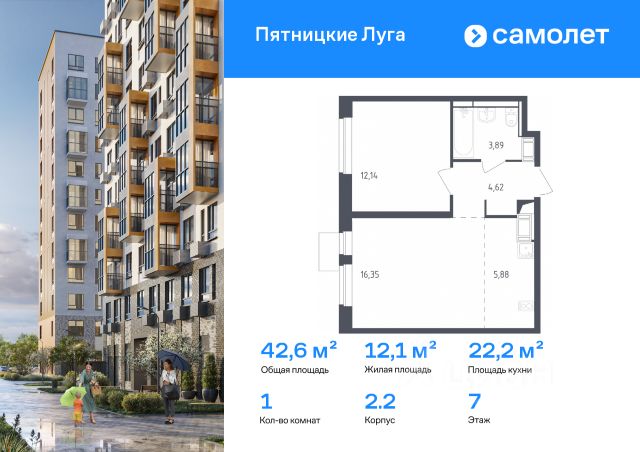Строим кварталы для жизни с заботой о будущем. Предлагается 1-комнатная квартира комфорт-класса 43,69 кв.м в корпусе 2.1 на 12 этаже, в ЖК "Пятницкие Луга" Квартира без отделки. Доступность опции "отделка" и возможность комплектации мебелью и декором уточняйте у застройщика. Приобрести квартиру возможно по специальным акциям от застройщика, с текущими условиями акций можно ознакомиться в блоке "Акций". Цена динамическая и может отличаться, уточняйте актуальность у застройщика. Жить в проекте "Пятницкие Луга" — значит просыпаться с видом на лес или реку. До Пятницкого шоссе — 5 минут на авто, до метро "Пятницкое шоссе" — 12 минут. В 2025 году появится тоннель с выездом на Путилковское шоссе. Рядом лесопарки и усадьба. На территории комплекса появятся 4 детских сада, 2 школы и поликлиника. Во дворе — сквер, внутренний сад, плейхаб и спортхаб. Квартиры с отделкой. Доступна улучшенная отделка, мебель и декор.