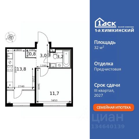 БЕЗ ПЕРВОНАЧАЛЬНОГО ВЗНОСА! Прямая продажа от застройщика! Жилой Комплекс класса Комфорт. Продаётся 1-к квартира номер 259 общей площадью 32.5 кв.м. на 2-м этаже 6 этажного здания. Предчистовая отделка. Цена с учётом скидки. Особенности квартиры: - Организуем показ в удобное для вас время! - Линейная планировка - максимальная функциональность и удобство. - Просторная кухня - место для семейных ужинов и кулинарных экспериментов. - Линейная кухня - функциональность и практичность в одном решении. - Гардеробная - удобство для хранения и организации вещей. - Тёплая лоджия - пространство для отдыха в любое время года. Квартира с предчистовой отделкой. Вам не придется заниматься черновыми и трудоёмкими работы, а чистовую отделку и дизайн - сделайте на свой вкус. Информация о комплексе: "1-й Химкинский": гармония современного города и природы на 102 га у Химкинского леса и канала им. Москвы. Развитая инфраструктура: ТЦ, школы, спорткомплекс с термами и СПА, парк развлечений. Идеальный баланс для жизни в окружении зелени и городского комфорта. Транспортная доступность: ЖК "1-й Химкинский" дает возможность выбрать любой способ передвижения как до города, так и до самых разных объектов, которые могут представлять интерес для его жителей. Не важно, какой способ передвижения вы предпочитаете, успевать всегда и везде можно вне зависимости от выбора транспорта. - 8 мин. пешком (800 м) до остановки "Золотая Арка" -10 мин пешком (1 км) до остановки "Поворот на Ивакино" Внутренняя инфраструктура: Безопасность: закрытые дворы без машин, безбарьерная среда, сквозные подъезды, камеры на детских площадках с трансляцией на смартфон. Отдых: семейный парк развлечений, двухэтажный ТЦ 8 000 м² с фудкортом. Образование: 4 детских сада, 2 муниципальные школы. Спорт: закольцованный веломаршрут, спорткомплекс с термами, тренажерный зал, воркаут зоны. Инфраструктура: поликлиника со станцией скорой помощи, пожарное депо. Паркинг: подземный паркинг, кладовые на -1 этаже, СТО и автомойка на территории. Квартира с предчистовой отделкой - ваш дизайн без черновых работ Продается 1-комнатная квартира в микрорайоне Клязьма-Старбеево в городе Химки.