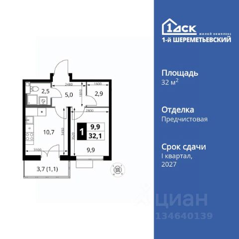 Прямая продажа от застройщика! Жилой Комплекс класса Комфорт Плюс. Продаётся 1-к квартира номер 467 общей площадью 32.1 кв.м. на 2-м этаже 16 этажного дома. Отделка Whitebox. Цена с учётом скидки! Особенности квартиры: - Линейная планировка - максимальная функциональность и удобство. - Увеличенная ширина окна/окон - больше света и визуального простора. - Можно оборудовать рабочее место - комфорт для работы и учёбы. - Линейная кухня - функциональность и практичность в одном решении. - Гардеробная - удобство для хранения и организации вещей. - Балкон - открытое пространство для отдыха. Квартира с предчистовой отделкой (White box). Вам не придется заниматься черновыми и трудоёмкими работы, а чистовую отделку и дизайн - сделайте на свой вкус. Информация о комплексе: ЖК 1-й Шереметьевский расположен в самом центре Подрезково, от него всего 6 минут пешком до одноименной станции ж/д и планируемой к открытию МЦД-3. В комплексе яркие и уютные, лобби, большая колясочная, лапомойка. Благодаря гостевому санузлу на 1 этаже прогулки станут по-настоящему долгими. Два лифта пассажирский и грузовой.Во всех корпусах 1-го Шереметьевского там устроены кладовые, а в корпусах 3-5 есть подземный паркинг. В ЖК 1-й Шереметьевский разнообразие площадей и планировок. Большие кухни-гостиные: в них два окна или больше. Во всех квартирах площадью от 40 кв.м. и выше спроектировано 2 санузла. Большие остекленные лоджии с отделкой. Система Умная квартира, реализованная в 1-м Шереметьевском. В каждой квартире установлены датчики протечек и запорные вентили с электроприводом, которые самостоятельно перекрывают воду в случае аварии. Мобильное приложение управляет группами электропотребителей: даже если вы забыли утюг включенным, можно обесточить его дистанционно. Транспортная доступность: - Общественный транспорт: До ближайших станций метро Планерной и Войковской около 40-50 минут на автобусе. 6 минут до ЖД станции Подрезково (МЦД-3) - Личный автотранспорт: Удобный выезд на Ленинградское шоссе позволяет быстро добираться до МКАДа и в центр Москвы, до платной трассы М11 и в аэропорт Шереметьево. 3 минуты до Ленинградского ш. 10 минут до платной трассы М11 15 минут до МКАД 20 минут до ст. м Войковская 25 минут до ст. м Планерная Внутренняя инфраструктура: 1-й Шереметьевский не только сокращает время, которое вы будете проводить в дороге. Но и предпринимает многое, чтобы вы меньше ездили и чаще ходили. На первых этажах корпусов разместятся фрешмаркеты и пункты выдачи маркетплейсов, салоны красоты и химчистки, кофейни и пекарни всё, что необходимо изо дня в день, но не заслуживает отдельной поездки на машине или такси. В квартале будут построены собственные школа и детский сад. Школа рассчитана на 1100 учеников. В ней будут 25-метровый бассейн и просторный атриум, медиатека. Детский сад рассчитана на 400 малышей. Здесь стильный дизайн и комфортные группы, большой физкультурный зал и просторный зал для занятия музыкой. Продается 1-комнатная квартира в микрорайоне Подрезково в городе Химки.