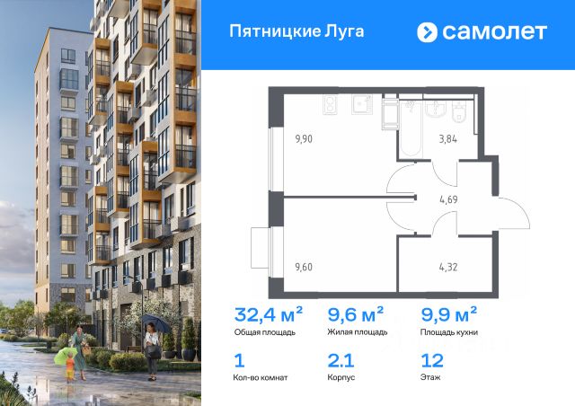Строим кварталы для жизни с заботой о будущем. Предлагается 1-комнатная квартира комфорт-класса 43,69 кв.м в корпусе 2.1 на 12 этаже, в ЖК "Пятницкие Луга" Квартира без отделки. Доступность опции "отделка" и возможность комплектации мебелью и декором уточняйте у застройщика. Приобрести квартиру возможно по специальным акциям от застройщика, с текущими условиями акций можно ознакомиться в блоке "Акций". Цена динамическая и может отличаться, уточняйте актуальность у застройщика. Жить в проекте "Пятницкие Луга" — значит просыпаться с видом на лес или реку. До Пятницкого шоссе — 5 минут на авто, до метро "Пятницкое шоссе" — 12 минут. В 2025 году появится тоннель с выездом на Путилковское шоссе. Рядом лесопарки и усадьба. На территории комплекса появятся 4 детских сада, 2 школы и поликлиника. Во дворе — сквер, внутренний сад, плейхаб и спортхаб. Квартиры с отделкой. Доступна улучшенная отделка, мебель и декор.