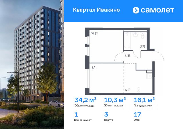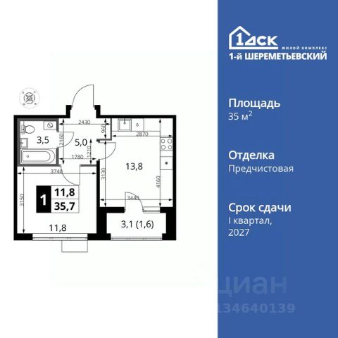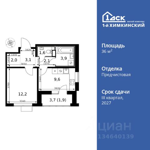 Продается однокомнатная квартира в жилом комплексе комфорт класса "Химки Тайм" площадью 34.12 кв.м. на 20 этаже 20 этажного дома. Квартира с отделкой, окна выходят во двор и на улицу.