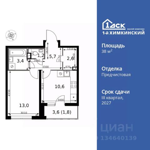 УСПЕЙ ПО СЕМЕЙНОЙ ИПОТЕКЕ БЕЗ НАЦЕНКИ! От 25 000 рублей в месяц! Прямая продажа от застройщика! Жилой Комплекс класса Комфорт. Продаётся 1-к квартира номер 65 общей площадью 33.8 кв.м. на 6-м этаже 17 этажного здания. Отделка Whitebox. Особенности квартиры: - Линейная планировка - максимальная функциональность и удобство. - Ниша под шкаф - компактное и удобное место для вещей. - Лоджия - уютное место для отдыха и тишины. Квартира с предчистовой отделкой (White box). Вам не придется заниматься черновыми и трудоёмкими работы, а чистовую отделку и дизайн - сделайте на свой вкус. Информация о комплексе: Квартал класса комфорт плюс, где современное городское пространство граничит с удивительной природой вокруг. 1-й Химкинский расположен на территории в 102 га и органично вписан в природное окружение Химкинского леса и канала им. Москвы. В проекте предусмотрена богатая коммерческая инфраструктура с собственным торговым центром, общеобразовательные учреждения и социальные объекты. Изюминкой жилого комплекса будут спортивно-оздоровительный комплекс с термами и SPA и семейный парк развлечений. Транспортная доступность: ЖК "1-й Химкинский" дает возможность выбрать любой способ передвижения как до города, так и до самых разных объектов, которые могут представлять интерес для его жителей. Не важно, какой способ передвижения вы предпочитаете, успевать всегда и везде можно вне зависимости от выбора транспорта. - 8 мин. пешком (800 м) до остановки "Золотая Арка" -10 мин пешком (1 км) до остановки "Поворот на Ивакино" Внутренняя инфраструктура: - Безопасность: закрытые дворы без машин, безбарьерная среда и сквозные подъезды, камеры на детских площадках с возможностью трансляции на смартфоне - Идеальный отдых в кругу семьи: семейный парк развлечений на территории, торговый центр (2-х этажный) общей площадью более 8 тыс. кв. м с фудкортом - Образование: 3 детских сада и современная муниципальная школа на 2450 мест - Спортивная среда: закольцованный веломаршрут с навигацией, спортивный комплекс с термами, закрытый тренажерный зал и зоны ворк-аута - Социальные объекты: поликлиника со станцией скорой помощи, пожарное депо - Подземный паркинг и кладовые помещения на -1 этаже, станция техобслуживания и автомойка на территории 1-комнатная квартира в новостройке в микрорайоне Клязьма-Старбеево в городе Химки.