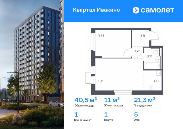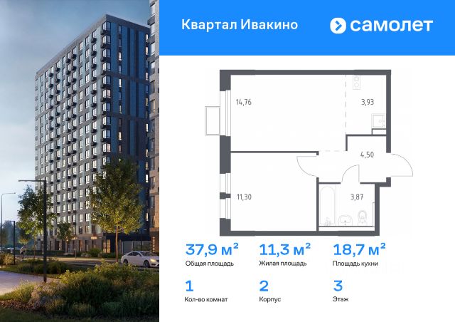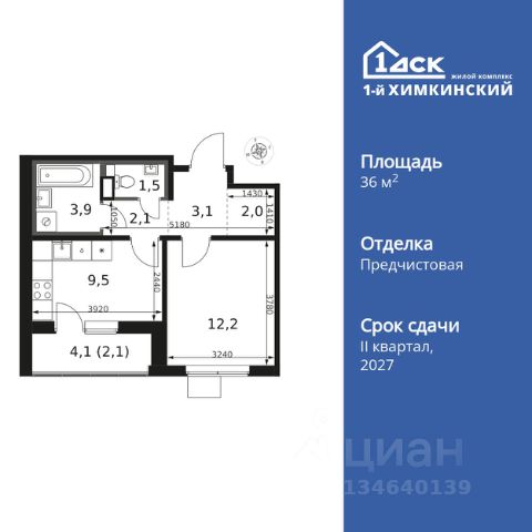 продается однокомнатная квартира с отделкой от застройщика на 2м этаже 12ти этажного дома в ЖК Пятницкие луга, корпус 1.1, секция 8,