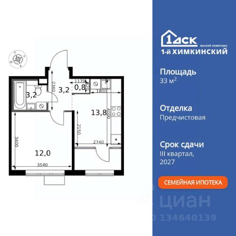 БЕЗ ПЕРВОНАЧАЛЬНОГО ВЗНОСА! Прямая продажа от застройщика! Жилой Комплекс класса Комфорт. Продаётся 1-к квартира номер 556 общей площадью 38.7 кв.м. на 12-м этаже 13 этажного здания. Предчистовая отделка. Цена с учётом скидки. Особенности квартиры: - Организуем показ в удобное для вас время! - Линейная планировка - максимальная функциональность и удобство. - Раздельный санузел - больше удобства для всех членов семьи. - Гардеробная - удобство для хранения и организации вещей. - Лоджия - уютное место для отдыха и тишины. Квартира с предчистовой отделкой. Вам не придется заниматься черновыми и трудоёмкими работы, а чистовую отделку и дизайн - сделайте на свой вкус. Информация о комплексе: "1-й Химкинский": гармония современного города и природы на 102 га у Химкинского леса и канала им. Москвы. Развитая инфраструктура: ТЦ, школы, спорткомплекс с термами и СПА, парк развлечений. Идеальный баланс для жизни в окружении зелени и городского комфорта. Транспортная доступность: ЖК "1-й Химкинский" дает возможность выбрать любой способ передвижения как до города, так и до самых разных объектов, которые могут представлять интерес для его жителей. Не важно, какой способ передвижения вы предпочитаете, успевать всегда и везде можно вне зависимости от выбора транспорта. - 8 мин. пешком (800 м) до остановки "Золотая Арка" -10 мин пешком (1 км) до остановки "Поворот на Ивакино" Внутренняя инфраструктура: Безопасность: закрытые дворы без машин, безбарьерная среда, сквозные подъезды, камеры на детских площадках с трансляцией на смартфон. Отдых: семейный парк развлечений, двухэтажный ТЦ 8 000 м² с фудкортом. Образование: 4 детских сада, 2 муниципальные школы. Спорт: закольцованный веломаршрут, спорткомплекс с термами, тренажерный зал, воркаут зоны. Инфраструктура: поликлиника со станцией скорой помощи, пожарное депо. Паркинг: подземный паркинг, кладовые на -1 этаже, СТО и автомойка на территории. Квартира с предчистовой отделкой - ваш дизайн без черновых работ Купить 1-комнатную квартиру с отделкой в городском округе Химках Московской области.