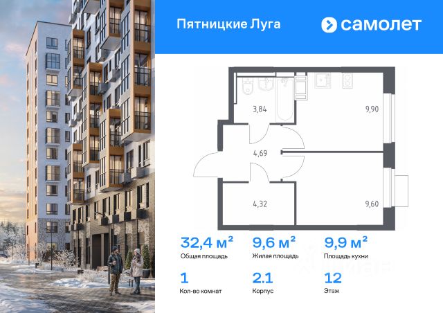 Строим кварталы для жизни с заботой о будущем. Предлагается 1-комнатная квартира комфорт-класса 36,04 кв.м в корпусе 2.1 на 5 этаже, в ЖК "Пятницкие Луга" Квартира без отделки. Доступность опции "отделка" и возможность комплектации мебелью и декором уточняйте у застройщика. Приобрести квартиру возможно по специальным акциям от застройщика, с текущими условиями акций можно ознакомиться в блоке "Акций". Цена динамическая и может отличаться, уточняйте актуальность у застройщика. Жить в проекте "Пятницкие Луга" — значит просыпаться с видом на лес или реку. До Пятницкого шоссе — 5 минут на авто, до метро "Пятницкое шоссе" — 12 минут. В 2025 году появится тоннель с выездом на Путилковское шоссе. Рядом лесопарки и усадьба. На территории комплекса появятся 4 детских сада, 2 школы и поликлиника. Во дворе — сквер, внутренний сад, плейхаб и спортхаб. Квартиры с отделкой. Доступна улучшенная отделка, мебель и декор.