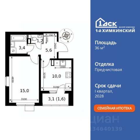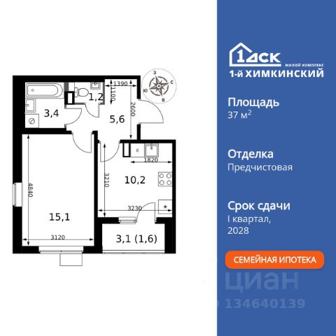 БЕЗ ПЕРВОНАЧАЛЬНОГО ВЗНОСА! Прямая продажа от застройщика! Жилой Комплекс класса Комфорт. Продаётся 1-к квартира номер 148 общей площадью 36.8 кв.м. на 5-м этаже 10 этажного здания. Без отделки. Цена с учётом скидки. Особенности квартиры: - Организуем показ в удобное для вас время! - Линейная планировка - максимальная функциональность и удобство. - Просторная кухня - место для семейных ужинов и кулинарных экспериментов. - Линейная кухня - функциональность и практичность в одном решении. - Гардеробная - удобство для хранения и организации вещей. - Лоджия - уютное место для отдыха и тишины. Квартира без отделки. Чистый холст для воплощения интерьера вашей мечты. Информация о комплексе: "1-й Химкинский": гармония современного города и природы на 102 га у Химкинского леса и канала им. Москвы. Развитая инфраструктура: ТЦ, школы, спорткомплекс с термами и СПА, парк развлечений. Идеальный баланс для жизни в окружении зелени и городского комфорта. Транспортная доступность: ЖК "1-й Химкинский" дает возможность выбрать любой способ передвижения как до города, так и до самых разных объектов, которые могут представлять интерес для его жителей. Не важно, какой способ передвижения вы предпочитаете, успевать всегда и везде можно вне зависимости от выбора транспорта. - 8 мин. пешком (800 м) до остановки "Золотая Арка" -10 мин пешком (1 км) до остановки "Поворот на Ивакино" Внутренняя инфраструктура: Безопасность: закрытые дворы без машин, безбарьерная среда, сквозные подъезды, камеры на детских площадках с трансляцией на смартфон. Отдых: семейный парк развлечений, двухэтажный ТЦ 8 000 м² с фудкортом. Образование: 4 детских сада, 2 муниципальные школы. Спорт: закольцованный веломаршрут, спорткомплекс с термами, тренажерный зал, воркаут зоны. Инфраструктура: поликлиника со станцией скорой помощи, пожарное депо. Паркинг: подземный паркинг, кладовые на -1 этаже, СТО и автомойка на территории. Квартира без отделки - чистый холст для вашего интерьера.