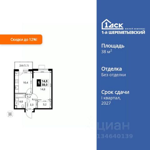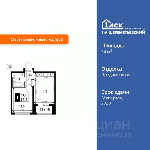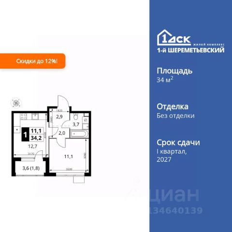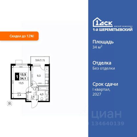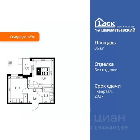 1-комнатные квартиры в жилом комплексе 1-й ШереметьевскийЖК «1-й Шереметьевский»