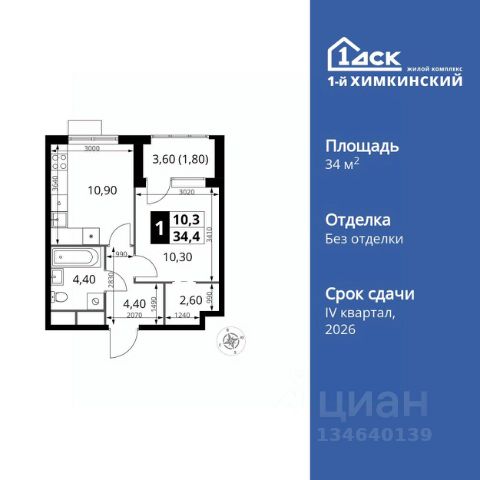 Прямая продажа от застройщика! Жилой Комплекс класса Комфорт. Продаётся 1-к квартира номер 209 общей площадью 34.4 кв.м. на 6-м этаже 16 этажного здания. Без отделки. Особенности квартиры: - Мастер-зона с гардеробной. Просторное место для отдыха и удобного хранения вещей. - Линейная планировка - максимальная функциональность и удобство. - Гардеробная - удобство для хранения и организации вещей. - Ниша под шкаф - компактное и удобное место для вещей. - Лоджия - уютное место для отдыха и тишины. Информация о комплексе: Квартал класса комфорт плюс, где современное городское пространство граничит с удивительной природой вокруг. 1-й Химкинский расположен на территории в 102 га и органично вписан в природное окружение Химкинского леса и канала им. Москвы. В проекте предусмотрена богатая коммерческая инфраструктура с собственным торговым центром, общеобразовательные учреждения и социальные объекты. Изюминкой жилого комплекса будут спортивно-оздоровительный комплекс с термами и SPA и семейный парк развлечений. Транспортная доступность: ЖК "1-й Химкинский" дает возможность выбрать любой способ передвижения как до города, так и до самых разных объектов, которые могут представлять интерес для его жителей. Не важно, какой способ передвижения вы предпочитаете, успевать всегда и везде можно вне зависимости от выбора транспорта. - 8 мин. пешком (800 м) до остановки "Золотая Арка" -10 мин пешком (1 км) до остановки "Поворот на Ивакино" Внутренняя инфраструктура: - Безопасность: закрытые дворы без машин, безбарьерная среда и сквозные подъезды, камеры на детских площадках с возможностью трансляции на смартфоне - Идеальный отдых в кругу семьи: семейный парк развлечений на территории, торговый центр (2-х этажный) общей площадью более 8 тыс. кв. м с фудкортом - Образование: 3 детских сада и современная муниципальная школа на 2450 мест - Спортивная среда: закольцованный веломаршрут с навигацией, спортивный комплекс с термами, закрытый тренажерный зал и зоны ворк-аута - Социальные объекты: поликлиника со станцией скорой помощи, пожарное депо - Подземный паркинг и кладовые помещения на -1 этаже, станция техобслуживания и автомойка на территории