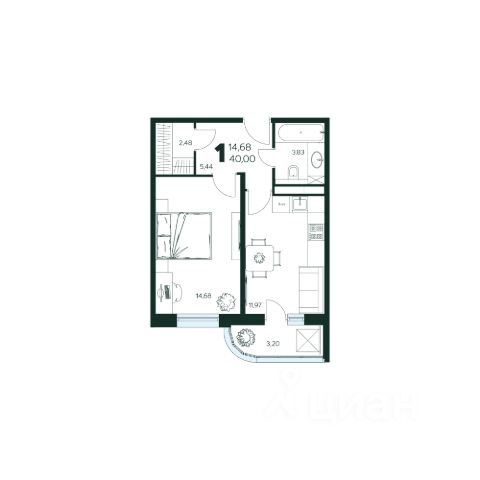 Продаётся 1-комнатная квартира в строящемся доме (Корпус 2), срок сдачи: III-кв. 2027, общей площадью 39.94 кв.м., на 2 этаже. Новый жилой комплекс "по ул. Первомайская"