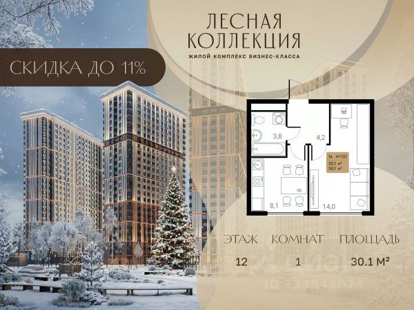 Скидка до 11% при 100% оплате в феврале. Старт продаж в новом жилом комплексе Лесная Коллекция! Продажа напрямую от застройщика. 1-комнатная квартира на 12-этаже, площадью 30.8-квм. Лесная Коллекция это продуманный жилой комплекс для тех, кто хочет жить в комфортной городской среде и при этом быть рядом с природой. Удачное расположение, развитая инфраструктура и закрытая территория делают проект удобным для повседневной жизни. Удобная локация и транспорт • Быстрый выезд на Путилковское шоссе • Близость станции метро "Планерная" • Три железнодорожные станции рядом: Химки, Левобережная, Ховрино • Более 40 автобусных маршрутов Локация позволяет легко добираться как в центр города, так и в соседние районы. Территория и окружение • Соседство с престижным районом Куркино • Закрытая благоустроенная территория без сквозного движения • Пространства для прогулок и занятий спортом • Двор примыкает к лесному массиву • Архитектура комплекса выдержана в сдержанном, респектабельном стиле • До 70% окон ориентированы на парк Квартиры и планировки • Удобные и функциональные планировочные решения • Формат комфорт-класса по разумной цене • Максимум естественного света за счёт удачного расположения корпусов Инфраструктура внутри комплекса • Детский сад на территории на 140 мест • МФЦ для решения повседневных вопросов • Коммерческие помещения на первых этажах • Магазины, кафе и салоны красоты прямо в доме • Собственный паркинг рядом с домом Всё необходимое рядом • 78 муниципальных и 42 частных детских сада • 40 школ, включая гимназии и лицеи • 6 колледжей и техникумов • 5 вузов поблизости • Крупные торговые центры и рынки в удобной доступности О застройщике Проекты застройщика "Град Девелопмент" — это более 600 тыс. кв. м реализованной недвижимости, включая клубные форматы и жильё бизнес-класса. Компания известна качеством строительства и соблюдением сроков.