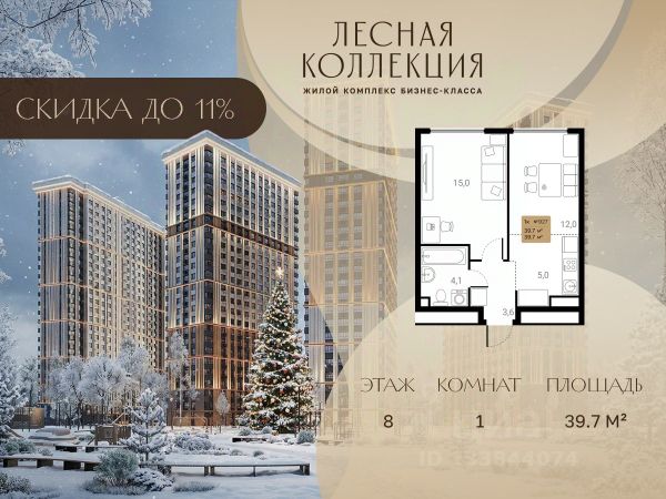 Скидка до 11% при 100% оплате в феврале. Старт продаж в новом жилом комплексе Лесная Коллекция! Продажа напрямую от застройщика. 1-комнатная квартира на 12-этаже, площадью 30.8-квм. Лесная Коллекция это продуманный жилой комплекс для тех, кто хочет жить в комфортной городской среде и при этом быть рядом с природой. Удачное расположение, развитая инфраструктура и закрытая территория делают проект удобным для повседневной жизни. Удобная локация и транспорт • Быстрый выезд на Путилковское шоссе • Близость станции метро "Планерная" • Три железнодорожные станции рядом: Химки, Левобережная, Ховрино • Более 40 автобусных маршрутов Локация позволяет легко добираться как в центр города, так и в соседние районы. Территория и окружение • Соседство с престижным районом Куркино • Закрытая благоустроенная территория без сквозного движения • Пространства для прогулок и занятий спортом • Двор примыкает к лесному массиву • Архитектура комплекса выдержана в сдержанном, респектабельном стиле • До 70% окон ориентированы на парк Квартиры и планировки • Удобные и функциональные планировочные решения • Формат комфорт-класса по разумной цене • Максимум естественного света за счёт удачного расположения корпусов Инфраструктура внутри комплекса • Детский сад на территории на 140 мест • МФЦ для решения повседневных вопросов • Коммерческие помещения на первых этажах • Магазины, кафе и салоны красоты прямо в доме • Собственный паркинг рядом с домом Всё необходимое рядом • 78 муниципальных и 42 частных детских сада • 40 школ, включая гимназии и лицеи • 6 колледжей и техникумов • 5 вузов поблизости • Крупные торговые центры и рынки в удобной доступности О застройщике Проекты застройщика "Град Девелопмент" — это более 600 тыс. кв. м реализованной недвижимости, включая клубные форматы и жильё бизнес-класса. Компания известна качеством строительства и соблюдением сроков.