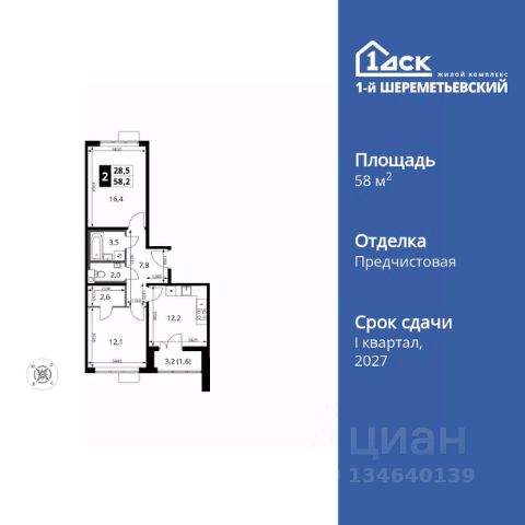 Продается 2 комн. квартира на 8 этаже из 17, секция 1, в Планерный Квартал площадью 58.50 кв.м. ЖК Планерный Квартал - это сочетание развитой инфраструктуры, современных технологий, отличной экологии и транспортной доступности. Комплекс расположен в 700м от МКАД на границе с Алёшкинским лесопарком в районе Новые Химки. Прямой выезд на МКАД и стремительное Ленинградское шоссе за 20 минут примчат вас к центру Москвы. Детские сады, школы и медицинские учреждения находится в шаговой доступности. Закрытая территория, двор без машин, круглосуточная охрана и видеонаблюдением обеспечат безопасность для жителей, а бесключевой доступ, высокоскоростной wi-fi и консьерж-служба удобство и комфорт. Двухэтажный подземный паркинг с возможностью зарядки электромобилей позволит забыть о проблеме парковок во дворе, а наличие кладовых помещений избавит от проблем с хранением габаритных и сезонных вещей. На территории расположен собственный спорткомплекс с детским и спортивным бассейном, детские и спортивные площадки с зонами для разных возрастов, а также общественное пространство для проведения праздников и массовых мероприятий. Подъезды спроектированы известным архбюро в современном стиле, оборудованы современным инженерным оборудованием, колясочными, местами для зарядки электросамокатов и высокоскоростными лифтами. Большое разнообразие планировок от 26 до 88м2 и корпуса разной этажности, от 6 до 17 позволит выбрать именно свою квартиру! 2-комнатная квартира, примерная площадь 60 м2 в Химках.