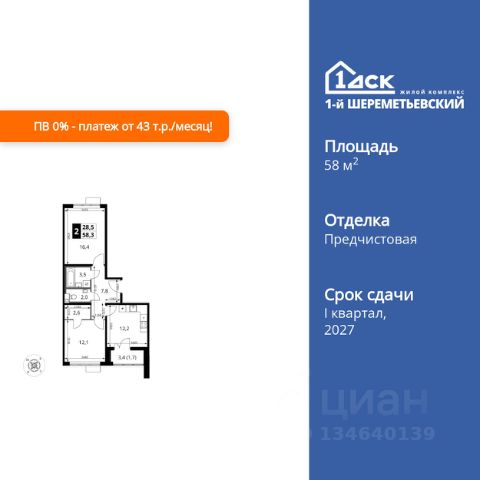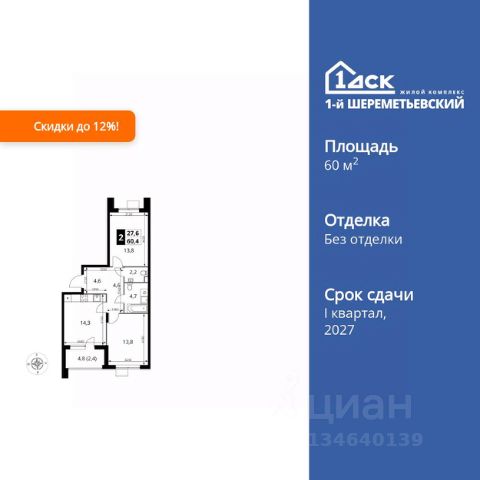Прямая продажа от застройщика! Жилой Комплекс класса Комфорт Плюс. Продаётся 2-к квартира номер 185 общей площадью 60.4 кв.м. на 6-м этаже 16 этажного здания. Без отделки. Особенности квартиры: - Распашная планировка - отличное сочетание удобства и свободы. - Увеличенная ширина окна/окон - больше света и визуального простора. - Гостевой санузел - комфорт и удобство для ваших гостей. - Можно оборудовать рабочее место - комфорт для работы и учёбы. - Линейная кухня - функциональность и практичность в одном решении. - Возможность добавить спальное место - дополнительный комфорт для гостей. - Просторная лоджия - идеальное место для уютных вечеров. Информация о комплексе: ЖК 1-й Шереметьевский расположен в самом центре Подрезково, от него всего 6 минут пешком до одноименной станции ж/д и планируемой к открытию МЦД-3. В комплексе яркие и уютные, лобби, большая колясочная, лапомойка. Благодаря гостевому санузлу на 1 этаже прогулки станут по-настоящему долгими. Два лифта пассажирский и грузовой.Во всех корпусах 1-го Шереметьевского там устроены кладовые, а в корпусах 3-5 есть подземный паркинг. В ЖК 1-й Шереметьевский разнообразие площадей и планировок. Большие кухни-гостиные: в них два окна или больше. Во всех квартирах площадью от 40 кв.м. и выше спроектировано 2 санузла. Большие остекленные лоджии с отделкой. Система Умная квартира, реализованная в 1-м Шереметьевском. В каждой квартире установлены датчики протечек и запорные вентили с электроприводом, которые самостоятельно перекрывают воду в случае аварии. Мобильное приложение управляет группами электропотребителей: даже если вы забыли утюг включенным, можно обесточить его дистанционно. Транспортная доступность: - Общественный транспорт: До ближайших станций метро Планерной и Войковской около 40-50 минут на автобусе. 6 минут до ЖД станции Подрезково (МЦД-3) - Личный автотранспорт: Удобный выезд на Ленинградское шоссе позволяет быстро добираться до МКАДа и в центр Москвы, до платной трассы М11 и в аэропорт Шереметьево. 3 минуты до Ленинградского ш. 10 минут до платной трассы М11 15 минут до МКАД 20 минут до ст. м Войковская 25 минут до ст. м Планерная Внутренняя инфраструктура: 1-й Шереметьевский не только сокращает время, которое вы будете проводить в дороге. Но и предпринимает многое, чтобы вы меньше ездили и чаще ходили. На первых этажах корпусов разместятся фрешмаркеты и пункты выдачи маркетплейсов, салоны красоты и химчистки, кофейни и пекарни всё, что необходимо изо дня в день, но не заслуживает отдельной поездки на машине или такси. В квартале будут построены собственные школа и детский сад. Школа рассчитана на 1100 учеников. В ней будут 25-метровый бассейн и просторный атриум, медиатека. Детский сад рассчитана на 400 малышей. Здесь стильный дизайн и комфортные группы, большой физкультурный зал и просторный зал для занятия музыкой. Дворы без машин. Безопасные детские площадки. Вдоль корпусов организованы зоны тихого отдыха: детски 2-комнатная квартира, примерная площадь 60 м2 в Химках.