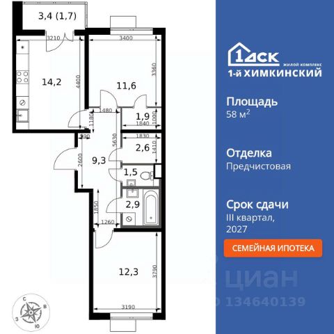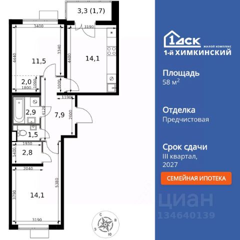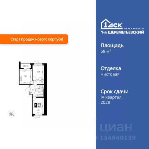 Прямая продажа от застройщика! Жилой Комплекс класса Комфорт. Продаётся 2-к квартира номер 530 общей площадью 58.5 кв.м. на 5-м этаже 13 этажного здания. Отделка Whitebox. Цена с учётом скидки. Особенности квартиры: - Мастер-зона с гардеробной. Просторное место для отдыха и удобного хранения вещей. - Распашная планировка - отличное сочетание удобства и свободы. - Раздельный санузел - больше удобства для всех членов семьи. - Просторная кухня - место для семейных ужинов и кулинарных экспериментов. - Лоджия - уютное место для отдыха и тишины. Квартира с предчистовой отделкой (White box). Вам не придется заниматься черновыми и трудоёмкими работы, а чистовую отделку и дизайн - сделайте на свой вкус. Информация о комплексе: Квартал класса комфорт плюс, где современное городское пространство граничит с удивительной природой вокруг. 1-й Химкинский расположен на территории в 102 га и органично вписан в природное окружение Химкинского леса и канала им. Москвы. В проекте предусмотрена богатая коммерческая инфраструктура с собственным торговым центром, общеобразовательные учреждения и социальные объекты. Изюминкой жилого комплекса будут спортивно-оздоровительный комплекс с термами и SPA и семейный парк развлечений. Транспортная доступность: ЖК "1-й Химкинский" дает возможность выбрать любой способ передвижения как до города, так и до самых разных объектов, которые могут представлять интерес для его жителей. Не важно, какой способ передвижения вы предпочитаете, успевать всегда и везде можно вне зависимости от выбора транспорта. - 8 мин. пешком (800 м) до остановки "Золотая Арка" -10 мин пешком (1 км) до остановки "Поворот на Ивакино" Внутренняя инфраструктура: - Безопасность: закрытые дворы без машин, безбарьерная среда и сквозные подъезды, камеры на детских площадках с возможностью трансляции на смартфоне - Идеальный отдых в кругу семьи: семейный парк развлечений на территории, торговый центр (2-х этажный) общей площадью более 8 тыс. кв. м с фудкортом - Образование: 3 детских сада и современная муниципальная школа на 2450 мест - Спортивная среда: закольцованный веломаршрут с навигацией, спортивный комплекс с термами, закрытый тренажерный зал и зоны ворк-аута - Социальные объекты: поликлиника со станцией скорой помощи, пожарное депо - Подземный паркинг и кладовые помещения на -1 этаже, станция техобслуживания и автомойка на территории 2-комнатная квартира, примерная площадь 60 м2 в Химках.