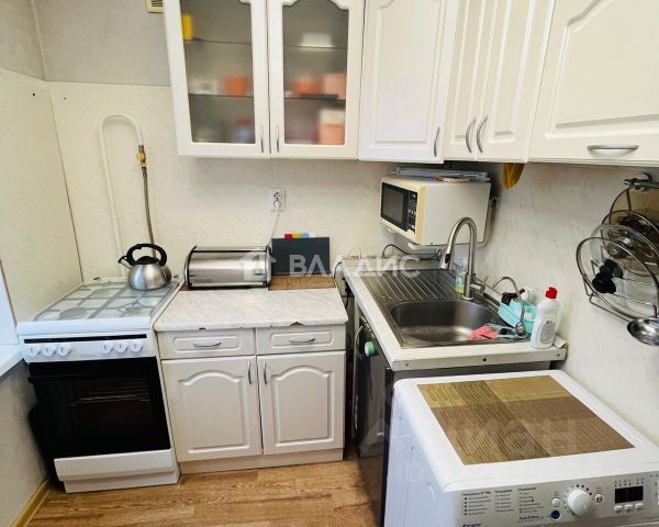 Полы: в комнатах - ламинат, на кухне и в коридоре - линолеум, в санузле - плитка. В квартире остаются покупателю: шкафы в обеих комнатах, холодильник, кухонный гарнитур, плита с духовым шкафом.