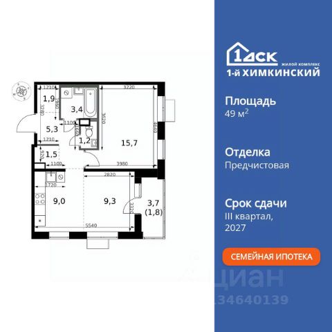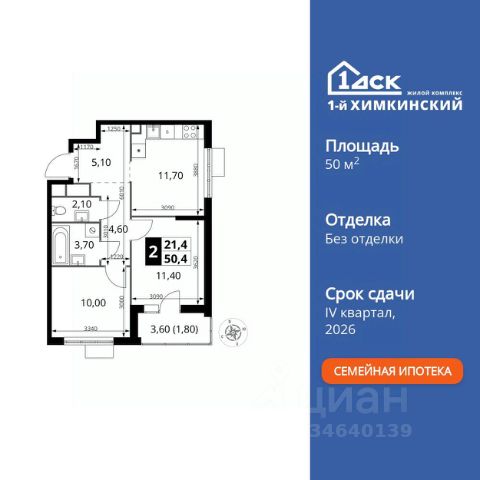 • ИПОТЕКА 10% ДЛЯ ВСЕХ БЕЗ НАЦЕНОК • ДОСТУПНО ПО СЕМЕЙНОЙ ИПОТЕКЕ Прямая продажа от застройщика! Жилой Комплекс класса Комфорт. Продаётся 2-к квартира номер 517 общей площадью 57.6 кв.м. на 13-м этаже 14 этажного здания. Отделка Whitebox. Особенности квартиры: - Просторная спальня, в которой можно разместить большую кровать. - Распашная планировка - отличное сочетание удобства и свободы. - Раздельный санузел - больше удобства для всех членов семьи. - Гардеробная - удобство для хранения и организации вещей. - Лоджия - уютное место для отдыха и тишины. Квартира с предчистовой отделкой (White box). Вам не придется заниматься черновыми и трудоёмкими работы, а чистовую отделку и дизайн - сделайте на свой вкус. Информация о комплексе: Квартал класса комфорт плюс, где современное городское пространство граничит с удивительной природой вокруг. 1-й Химкинский расположен на территории в 102 га и органично вписан в природное окружение Химкинского леса и канала им. Москвы. В проекте предусмотрена богатая коммерческая инфраструктура с собственным торговым центром, общеобразовательные учреждения и социальные объекты. Изюминкой жилого комплекса будут спортивно-оздоровительный комплекс с термами и SPA и семейный парк развлечений. Транспортная доступность: ЖК "1-й Химкинский" дает возможность выбрать любой способ передвижения как до города, так и до самых разных объектов, которые могут представлять интерес для его жителей. Не важно, какой способ передвижения вы предпочитаете, успевать всегда и везде можно вне зависимости от выбора транспорта. - 8 мин. пешком (800 м) до остановки "Золотая Арка" -10 мин пешком (1 км) до остановки "Поворот на Ивакино" Внутренняя инфраструктура: - Безопасность: закрытые дворы без машин, безбарьерная среда и сквозные подъезды, камеры на детских площадках с возможностью трансляции на смартфоне - Идеальный отдых в кругу семьи: семейный парк развлечений на территории, торговый центр (2-х этажный) общей площадью более 8 тыс. кв. м с фудкортом - Образование: 3 детских сада и современная муниципальная школа на 2450 мест - Спортивная среда: закольцованный веломаршрут с навигацией, спортивный комплекс с термами, закрытый тренажерный зал и зоны ворк-аута - Социальные объекты: поликлиника со станцией скорой помощи, пожарное депо - Подземный паркинг и кладовые помещения на -1 этаже, станция техобслуживания и автомойка на территории