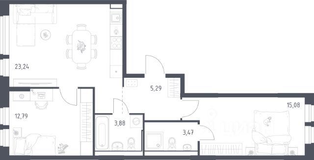 Продаётся 2-комнатная квартира в строящемся доме (Корпус 8), срок сдачи: 1-кв. 2026, общей площадью 70.76 кв.м., на 3 этаже. ЖК "Мишино-2" - современный мультиформатный жилой комплекс, который включает в себя многоквартирные дома, таунхаусы и коттеджи, возведенные в едином архитектурном стиле на закрытой территории с собственной инфраструктурой. Комплекс расположен в северной части города Химки и окружен лесопарком.
