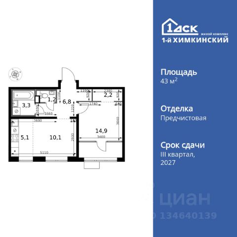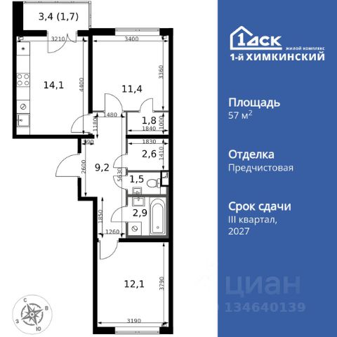 Прямая продажа от застройщика! Жилой Комплекс класса Комфорт. Продаётся 2-к квартира номер 515 общей площадью 57.3 кв.м. на 2-м этаже 13 этажного дома. Отделка Whitebox. Цена с учётом скидки! Особенности квартиры: - Мастер-зона с гардеробной. Просторное место для отдыха и удобного хранения вещей. - Распашная планировка - отличное сочетание удобства и свободы. - Раздельный санузел - больше удобства для всех членов семьи. - Просторная кухня - место для семейных ужинов и кулинарных экспериментов. - Гардеробная - удобство для хранения и организации вещей. - Лоджия - уютное место для отдыха и тишины. Квартира с предчистовой отделкой (White box). Вам не придется заниматься черновыми и трудоёмкими работы, а чистовую отделку и дизайн - сделайте на свой вкус. Информация о комплексе: Квартал класса комфорт плюс, где современное городское пространство граничит с удивительной природой вокруг. 1-й Химкинский расположен на территории в 102 га и органично вписан в природное окружение Химкинского леса и канала им. Москвы. В проекте предусмотрена богатая коммерческая инфраструктура с собственным торговым центром, общеобразовательные учреждения и социальные объекты. Изюминкой жилого комплекса будут спортивно-оздоровительный комплекс с термами и SPA и семейный парк развлечений. Транспортная доступность: ЖК "1-й Химкинский" дает возможность выбрать любой способ передвижения как до города, так и до самых разных объектов, которые могут представлять интерес для его жителей. Не важно, какой способ передвижения вы предпочитаете, успевать всегда и везде можно вне зависимости от выбора транспорта. - 8 мин. пешком (800 м) до остановки "Золотая Арка" -10 мин пешком (1 км) до остановки "Поворот на Ивакино" Внутренняя инфраструктура: - Безопасность: закрытые дворы без машин, безбарьерная среда и сквозные подъезды, камеры на детских площадках с возможностью трансляции на смартфоне - Идеальный отдых в кругу семьи: семейный парк развлечений на территории, торговый центр (2-х этажный) общей площадью более 8 тыс. кв. м с фудкортом - Образование: 3 детских сада и современная муниципальная школа на 2450 мест - Спортивная среда: закольцованный веломаршрут с навигацией, спортивный комплекс с термами, закрытый тренажерный зал и зоны ворк-аута - Социальные объекты: поликлиника со станцией скорой помощи, пожарное депо - Подземный паркинг и кладовые помещения на -1 этаже, станция техобслуживания и автомойка на территории