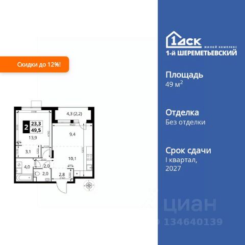 Прямая продажа от застройщика! Жилой Комплекс класса Комфорт Плюс. Продаётся 2-к квартира номер 275 общей площадью 49.7 кв.м. на 8-м этаже 17 этажного здания. Без отделки. Особенности квартиры: - Мастер-зона с гардеробной. Просторное место для отдыха и удобного хранения вещей. - Просторная спальня, в которой можно разместить большую кровать. - Линейная планировка - максимальная функциональность и удобство. - Увеличенная ширина окна/окон - больше света и визуального простора. - Просторная ванная - место для расслабления и уединения. - Гостевой санузел - комфорт и удобство для ваших гостей. - Ниша под стиральную машину - удобство и экономия пространства. - Евроформат - просторное и удобное жилье с отличной планировкой. - Кухня-гостиная - идеальное пространство для встреч с близкими. - Возможность добавить спальное место - дополнительный комфорт для гостей. - Гардеробная - удобство для хранения и организации вещей. - Ниша под шкаф - компактное и удобное место для вещей. - Балкон - открытое пространство для отдыха. Информация о комплексе: ЖК 1-й Шереметьевский расположен в самом центре Подрезково, от него всего 6 минут пешком до одноименной станции ж/д и планируемой к открытию МЦД-3. В комплексе яркие и уютные, лобби, большая колясочная, лапомойка. Благодаря гостевому санузлу на 1 этаже прогулки станут по-настоящему долгими. Два лифта пассажирский и грузовой.Во всех корпусах 1-го Шереметьевского там устроены кладовые, а в корпусах 3-5 есть подземный паркинг. В ЖК 1-й Шереметьевский разнообразие площадей и планировок. Большие кухни-гостиные: в них два окна или больше. Во всех квартирах площадью от 40 кв.м. и выше спроектировано 2 санузла. Большие остекленные лоджии с отделкой. Система Умная квартира, реализованная в 1-м Шереметьевском. В каждой квартире установлены датчики протечек и запорные вентили с электроприводом, которые самостоятельно перекрывают воду в случае аварии. Мобильное приложение управляет группами электропотребителей: даже если вы забыли утюг включенным, можно обесточить его дистанционно. Транспортная доступность: - Общественный транспорт: До ближайших станций метро Планерной и Войковской около 40-50 минут на автобусе. 6 минут до ЖД станции Подрезково (МЦД-3) - Личный автотранспорт: Удобный выезд на Ленинградское шоссе позволяет быстро добираться до МКАДа и в центр Москвы, до платной трассы М11 и в аэропорт Шереметьево. 3 минуты до Ленинградского ш. 10 минут до платной трассы М11 15 минут до МКАД 20 минут до ст. м Войковская 25 минут до ст. м Планерная Внутренняя инфраструктура: 1-й Шереметьевский не только сокращает время, которое вы будете проводить в дороге. Но и предпринимает многое, чтобы вы меньше ездили и чаще ходили. На первых этажах корпусов разместятся фрешмаркеты и пункты выдачи маркетплейсов, салоны красоты и химчистки, кофейни и пекарни всё, что необходимо изо дня в день, но не заслуживает отдельной поездки на машине или такси. В квартале будут построе
