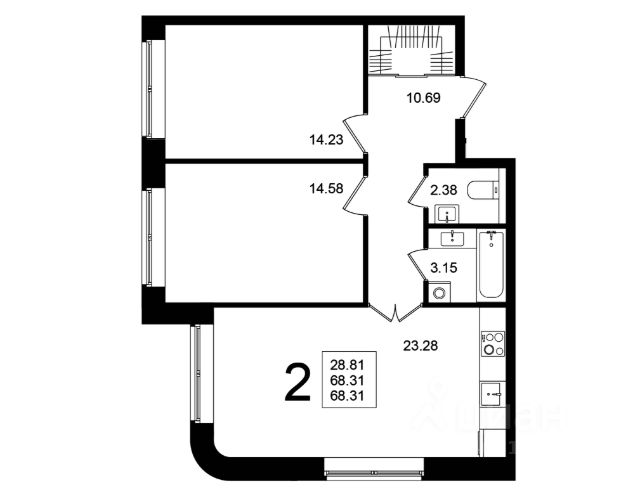 Отличная планировка с изолированными комнатами и окнами на две стороны.