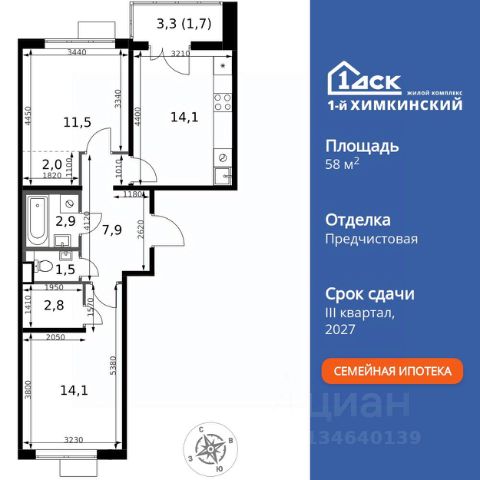 Прямая продажа от застройщика! Жилой Комплекс класса Комфорт. Продаётся 2-к квартира номер 547 общей площадью 58 кв.м. на 10-м этаже 13 этажного здания. Предчистовая отделка. Цена с учётом скидки. Особенности квартиры: - Организуем показ в удобное для вас время! - Мастер-зона с гардеробной. Просторное место для отдыха и удобного хранения вещей. - Распашная планировка - отличное сочетание удобства и свободы. - Раздельный санузел - больше удобства для всех членов семьи. - Просторная кухня - место для семейных ужинов и кулинарных экспериментов. - Гардеробная - удобство для хранения и организации вещей. - Лоджия - уютное место для отдыха и тишины. Квартира с предчистовой отделкой. Вам не придется заниматься черновыми и трудоёмкими работы, а чистовую отделку и дизайн - сделайте на свой вкус. Информация о комплексе: "1-й Химкинский": гармония современного города и природы на 102 га у Химкинского леса и канала им. Москвы. Развитая инфраструктура: ТЦ, школы, спорткомплекс с термами и СПА, парк развлечений. Идеальный баланс для жизни в окружении зелени и городского комфорта. Транспортная доступность: ЖК "1-й Химкинский" дает возможность выбрать любой способ передвижения как до города, так и до самых разных объектов, которые могут представлять интерес для его жителей. Не важно, какой способ передвижения вы предпочитаете, успевать всегда и везде можно вне зависимости от выбора транспорта. - 8 мин. пешком (800 м) до остановки "Золотая Арка" -10 мин пешком (1 км) до остановки "Поворот на Ивакино" Внутренняя инфраструктура: Безопасность: закрытые дворы без машин, безбарьерная среда, сквозные подъезды, камеры на детских площадках с трансляцией на смартфон. Отдых: семейный парк развлечений, двухэтажный ТЦ 8 000 м² с фудкортом. Образование: 4 детских сада, 2 муниципальные школы. Спорт: закольцованный веломаршрут, спорткомплекс с термами, тренажерный зал, воркаут зоны. Инфраструктура: поликлиника со станцией скорой помощи, пожарное депо. Паркинг: подземный паркинг, кладовые на -1 этаже, СТО и автомойка на территории. Квартира с предчистовой отделкой - ваш дизайн без черновых работ