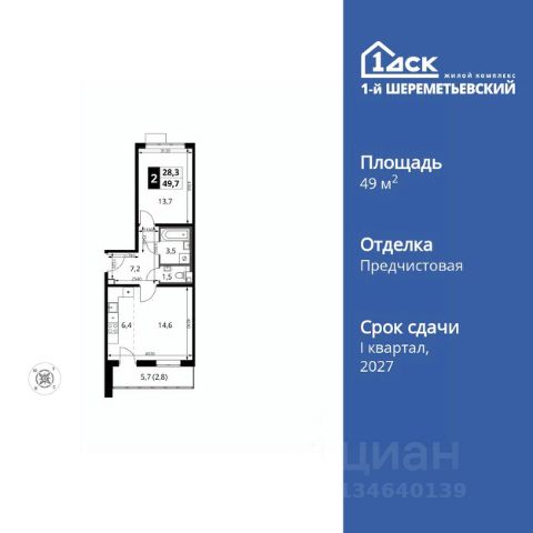 Прямая продажа от застройщика! Жилой Комплекс класса Комфорт Плюс. Продаётся 2-к квартира номер 825 общей площадью 49.7 кв.м. на 10-м этаже 16 этажного дома. Отделка Whitebox. Цена с учётом скидки! Особенности квартиры: - Просторная спальня, в которой можно разместить большую кровать. - Распашная планировка - отличное сочетание удобства и свободы. - Увеличенная ширина окна/окон - больше света и визуального простора. - Раздельный санузел - больше удобства для всех членов семьи. - Евроформат - просторное и удобное жилье с отличной планировкой. - Можно оборудовать рабочее место - комфорт для работы и учёбы. - Кухня-гостиная - идеальное пространство для встреч с близкими. - Линейная кухня - функциональность и практичность в одном решении. - Возможность добавить спальное место - дополнительный комфорт для гостей. - Просторная лоджия - идеальное место для уютных вечеров. Квартира с предчистовой отделкой (White box). Вам не придется заниматься черновыми и трудоёмкими работы, а чистовую отделку и дизайн - сделайте на свой вкус. Информация о комплексе: ЖК 1-й Шереметьевский расположен в самом центре Подрезково, от него всего 6 минут пешком до одноименной станции ж/д и планируемой к открытию МЦД-3. В комплексе яркие и уютные, лобби, большая колясочная, лапомойка. Благодаря гостевому санузлу на 1 этаже прогулки станут по-настоящему долгими. Два лифта пассажирский и грузовой.Во всех корпусах 1-го Шереметьевского там устроены кладовые, а в корпусах 3-5 есть подземный паркинг. В ЖК 1-й Шереметьевский разнообразие площадей и планировок. Большие кухни-гостиные: в них два окна или больше. Во всех квартирах площадью от 40 кв.м. и выше спроектировано 2 санузла. Большие остекленные лоджии с отделкой. Система Умная квартира, реализованная в 1-м Шереметьевском. В каждой квартире установлены датчики протечек и запорные вентили с электроприводом, которые самостоятельно перекрывают воду в случае аварии. Мобильное приложение управляет группами электропотребителей: даже если вы забыли утюг включенным, можно обесточить его дистанционно. Транспортная доступность: - Общественный транспорт: До ближайших станций метро Планерной и Войковской около 40-50 минут на автобусе. 6 минут до ЖД станции Подрезково (МЦД-3) - Личный автотранспорт: Удобный выезд на Ленинградское шоссе позволяет быстро добираться до МКАДа и в центр Москвы, до платной трассы М11 и в аэропорт Шереметьево. 3 минуты до Ленинградского ш. 10 минут до платной трассы М11 15 минут до МКАД 20 минут до ст. м Войковская 25 минут до ст. м Планерная Внутренняя инфраструктура: 1-й Шереметьевский не только сокращает время, которое вы будете проводить в дороге. Но и предпринимает многое, чтобы вы меньше ездили и чаще ходили. На первых этажах корпусов разместятся фрешмаркеты и пункты выдачи маркетплейсов, салоны красоты и химчистки, кофейни и пекарни всё, что необходимо изо дня в день, но не заслуживает отдельной поездки на машине или такси. В квартале буду