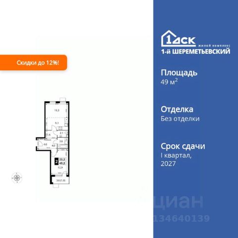 Прямая продажа от застройщика! Жилой Комплекс класса Комфорт Плюс. Продаётся 2-к квартира номер 54 общей площадью 54.6 кв.м. на 10-м этаже 16 этажного здания. Без отделки. Особенности квартиры: - Просторная спальня, в которой можно разместить большую кровать. - Распашная планировка - отличное сочетание удобства и свободы. - Увеличенная ширина окна/окон - больше света и визуального простора. - Раздельный санузел - больше удобства для всех членов семьи. - Можно оборудовать рабочее место - комфорт для работы и учёбы. - Линейная кухня - функциональность и практичность в одном решении. - Гардеробная - удобство для хранения и организации вещей. - Лоджия - уютное место для отдыха и тишины. Информация о комплексе: ЖК 1-й Шереметьевский расположен в самом центре Подрезково, от него всего 6 минут пешком до одноименной станции ж/д и планируемой к открытию МЦД-3. В комплексе яркие и уютные, лобби, большая колясочная, лапомойка. Благодаря гостевому санузлу на 1 этаже прогулки станут по-настоящему долгими. Два лифта пассажирский и грузовой.Во всех корпусах 1-го Шереметьевского там устроены кладовые, а в корпусах 3-5 есть подземный паркинг. В ЖК 1-й Шереметьевский разнообразие площадей и планировок. Большие кухни-гостиные: в них два окна или больше. Во всех квартирах площадью от 40 кв.м. и выше спроектировано 2 санузла. Большие остекленные лоджии с отделкой. Система Умная квартира, реализованная в 1-м Шереметьевском. В каждой квартире установлены датчики протечек и запорные вентили с электроприводом, которые самостоятельно перекрывают воду в случае аварии. Мобильное приложение управляет группами электропотребителей: даже если вы забыли утюг включенным, можно обесточить его дистанционно. Транспортная доступность: - Общественный транспорт: До ближайших станций метро Планерной и Войковской около 40-50 минут на автобусе. 6 минут до ЖД станции Подрезково (МЦД-3) - Личный автотранспорт: Удобный выезд на Ленинградское шоссе позволяет быстро добираться до МКАДа и в центр Москвы, до платной трассы М11 и в аэропорт Шереметьево. 3 минуты до Ленинградского ш. 10 минут до платной трассы М11 15 минут до МКАД 20 минут до ст. м Войковская 25 минут до ст. м Планерная Внутренняя инфраструктура: 1-й Шереметьевский не только сокращает время, которое вы будете проводить в дороге. Но и предпринимает многое, чтобы вы меньше ездили и чаще ходили. На первых этажах корпусов разместятся фрешмаркеты и пункты выдачи маркетплейсов, салоны красоты и химчистки, кофейни и пекарни всё, что необходимо изо дня в день, но не заслуживает отдельной поездки на машине или такси. В квартале будут построены собственные школа и детский сад. Школа рассчитана на 1100 учеников. В ней будут 25-метровый бассейн и просторный атриум, медиатека. Детский сад рассчитана на 400 малышей. Здесь стильный дизайн и комфортные группы, большой физкультурный зал и просторный зал для занятия музыкой. Дворы без машин. Безопасные детские площадки. Вдоль корпус