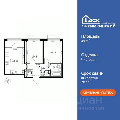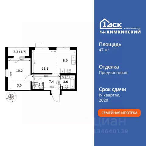 Прямая продажа от застройщика! Жилой Комплекс класса Комфорт. Продаётся 2-к квартира номер 261 общей площадью 50.6 кв.м. на 11-м этаже 16 этажного здания. Без отделки. Особенности квартиры: - Организуем показ в удобное для вас время! - Угловая планировка - больше пространства для ваших идей. - Раздельный санузел - больше удобства для всех членов семьи. - Линейная кухня - функциональность и практичность в одном решении. - Ниша под шкаф - компактное и удобное место для вещей. - Просторная лоджия - идеальное место для уютных вечеров. Квартира без отделки. Чистый холст для воплощения интерьера вашей мечты. Информация о комплексе: "1-й Химкинский": гармония современного города и природы на 102 га у Химкинского леса и канала им. Москвы. Развитая инфраструктура: ТЦ, школы, спорткомплекс с термами и СПА, парк развлечений. Идеальный баланс для жизни в окружении зелени и городского комфорта. Транспортная доступность: ЖК "1-й Химкинский" дает возможность выбрать любой способ передвижения как до города, так и до самых разных объектов, которые могут представлять интерес для его жителей. Не важно, какой способ передвижения вы предпочитаете, успевать всегда и везде можно вне зависимости от выбора транспорта. - 8 мин. пешком (800 м) до остановки "Золотая Арка" -10 мин пешком (1 км) до остановки "Поворот на Ивакино" Внутренняя инфраструктура: Безопасность: закрытые дворы без машин, безбарьерная среда, сквозные подъезды, камеры на детских площадках с трансляцией на смартфон. Отдых: семейный парк развлечений, двухэтажный ТЦ 8 000 м² с фудкортом. Образование: 4 детских сада, 2 муниципальные школы. Спорт: закольцованный веломаршрут, спорткомплекс с термами, тренажерный зал, воркаут зоны. Инфраструктура: поликлиника со станцией скорой помощи, пожарное депо. Паркинг: подземный паркинг, кладовые на -1 этаже, СТО и автомойка на территории. Квартира без отделки - чистый холст для вашего интерьера.