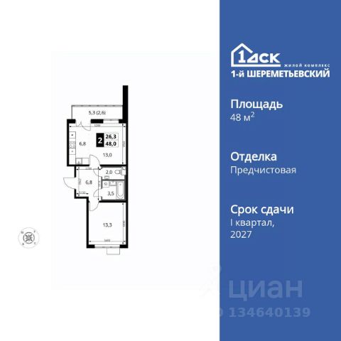 УСПЕЙ ПО СЕМЕЙНОЙ ИПОТЕКЕ БЕЗ НАЦЕНКИ! Квартиры в готовом квартале от 30 000 рублей в месяц! Прямая продажа от застройщика! Жилой Комплекс класса Комфорт Плюс. Продаётся 2-к квартира номер 871 общей площадью 49.8 кв.м. на 11-м этаже 17 этажного здания. Без отделки. Особенности квартиры: - Просторная спальня, в которой можно разместить большую кровать. - Распашная планировка - отличное сочетание удобства и свободы. - Раздельный санузел - больше удобства для всех членов семьи. - Евроформат - просторное и удобное жилье с отличной планировкой. - Можно оборудовать рабочее место - комфорт для работы и учёбы. - Кухня-гостиная - идеальное пространство для встреч с близкими. - Возможность добавить спальное место - дополнительный комфорт для гостей. - Лоджия - уютное место для отдыха и тишины. Информация о комплексе: ЖК 1-й Шереметьевский расположен в самом центре Подрезково, от него всего 6 минут пешком до одноименной станции ж/д и планируемой к открытию МЦД-3. В комплексе яркие и уютные, лобби, большая колясочная, лапомойка. Благодаря гостевому санузлу на 1 этаже прогулки станут по-настоящему долгими. Два лифта пассажирский и грузовой.Во всех корпусах 1-го Шереметьевского там устроены кладовые, а в корпусах 3-5 есть подземный паркинг. В ЖК 1-й Шереметьевский разнообразие площадей и планировок. Большие кухни-гостиные: в них два окна или больше. Во всех квартирах площадью от 40 кв.м. и выше спроектировано 2 санузла. Большие остекленные лоджии с отделкой. Система Умная квартира, реализованная в 1-м Шереметьевском. В каждой квартире установлены датчики протечек и запорные вентили с электроприводом, которые самостоятельно перекрывают воду в случае аварии. Мобильное приложение управляет группами электропотребителей: даже если вы забыли утюг включенным, можно обесточить его дистанционно. Транспортная доступность: - Общественный транспорт: До ближайших станций метро Планерной и Войковской около 40-50 минут на автобусе. 6 минут до ЖД станции Подрезково (МЦД-3) - Личный автотранспорт: Удобный выезд на Ленинградское шоссе позволяет быстро добираться до МКАДа и в центр Москвы, до платной трассы М11 и в аэропорт Шереметьево. 3 минуты до Ленинградского ш. 10 минут до платной трассы М11 15 минут до МКАД 20 минут до ст. м Войковская 25 минут до ст. м Планерная Внутренняя инфраструктура: 1-й Шереметьевский не только сокращает время, которое вы будете проводить в дороге. Но и предпринимает многое, чтобы вы меньше ездили и чаще ходили. На первых этажах корпусов разместятся фрешмаркеты и пункты выдачи маркетплейсов, салоны красоты и химчистки, кофейни и пекарни всё, что необходимо изо дня в день, но не заслуживает отдельной поездки на машине или такси. В квартале будут построены собственные школа и детский сад. Школа рассчитана на 1100 учеников. В ней будут 25-метровый бассейн и просторный атриум, медиатека. Детский сад рассчитана на 400 малышей. Здесь стильный дизайн и комфортные группы, большой физкультурн