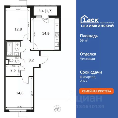 Прямая продажа от застройщика! Жилой Комплекс класса Комфорт. Продаётся 2-к квартира номер 374 общей площадью 49.3 кв.м. на 12-м этаже 17 этажного здания. Предчистовая отделка. Цена с учётом скидки. Особенности квартиры: - Организуем показ в удобное для вас время! - Линейная планировка - максимальная функциональность и удобство. - Раздельный санузел - больше удобства для всех членов семьи. - Просторная кухня - место для семейных ужинов и кулинарных экспериментов. - Гардеробная - удобство для хранения и организации вещей. - Тёплая лоджия - пространство для отдыха в любое время года. Квартира с предчистовой отделкой. Вам не придется заниматься черновыми и трудоёмкими работы, а чистовую отделку и дизайн - сделайте на свой вкус. Информация о комплексе: "1-й Химкинский": гармония современного города и природы на 102 га у Химкинского леса и канала им. Москвы. Развитая инфраструктура: ТЦ, школы, спорткомплекс с термами и СПА, парк развлечений. Идеальный баланс для жизни в окружении зелени и городского комфорта. Транспортная доступность: ЖК "1-й Химкинский" дает возможность выбрать любой способ передвижения как до города, так и до самых разных объектов, которые могут представлять интерес для его жителей. Не важно, какой способ передвижения вы предпочитаете, успевать всегда и везде можно вне зависимости от выбора транспорта. - 8 мин. пешком (800 м) до остановки "Золотая Арка" -10 мин пешком (1 км) до остановки "Поворот на Ивакино" Внутренняя инфраструктура: Безопасность: закрытые дворы без машин, безбарьерная среда, сквозные подъезды, камеры на детских площадках с трансляцией на смартфон. Отдых: семейный парк развлечений, двухэтажный ТЦ 8 000 м² с фудкортом. Образование: 4 детских сада, 2 муниципальные школы. Спорт: закольцованный веломаршрут, спорткомплекс с термами, тренажерный зал, воркаут зоны. Инфраструктура: поликлиника со станцией скорой помощи, пожарное депо. Паркинг: подземный паркинг, кладовые на -1 этаже, СТО и автомойка на территории. Квартира с предчистовой отделкой - ваш дизайн без черновых работ