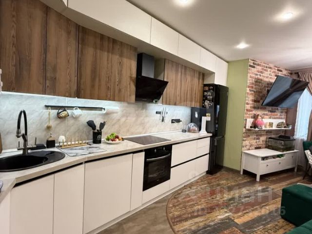 В кухне теплые полы, кухня ИКЕА, духовой шкаф, электрическая варочная панель, посудомоечная машина, холодильник, фильтр для питьевой воды - обратный осмос.